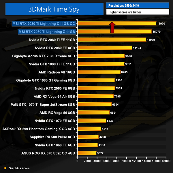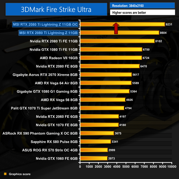 We used MSI Afterburner to overclock the Lightning Z. Our best result came with an extra 95MHz on the GPU core, while we were able to add 950MHz to the GDDR6 memory.