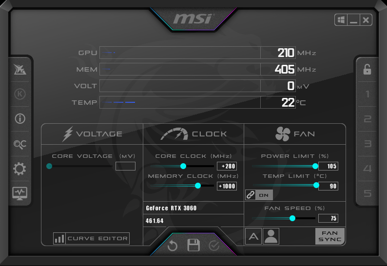 To overclock the Gaming X Trio, we first maximised the power limit slider at 105%. We were then able to add 280MHz to the GPU and 1000MHz to the GDDR6 memory.