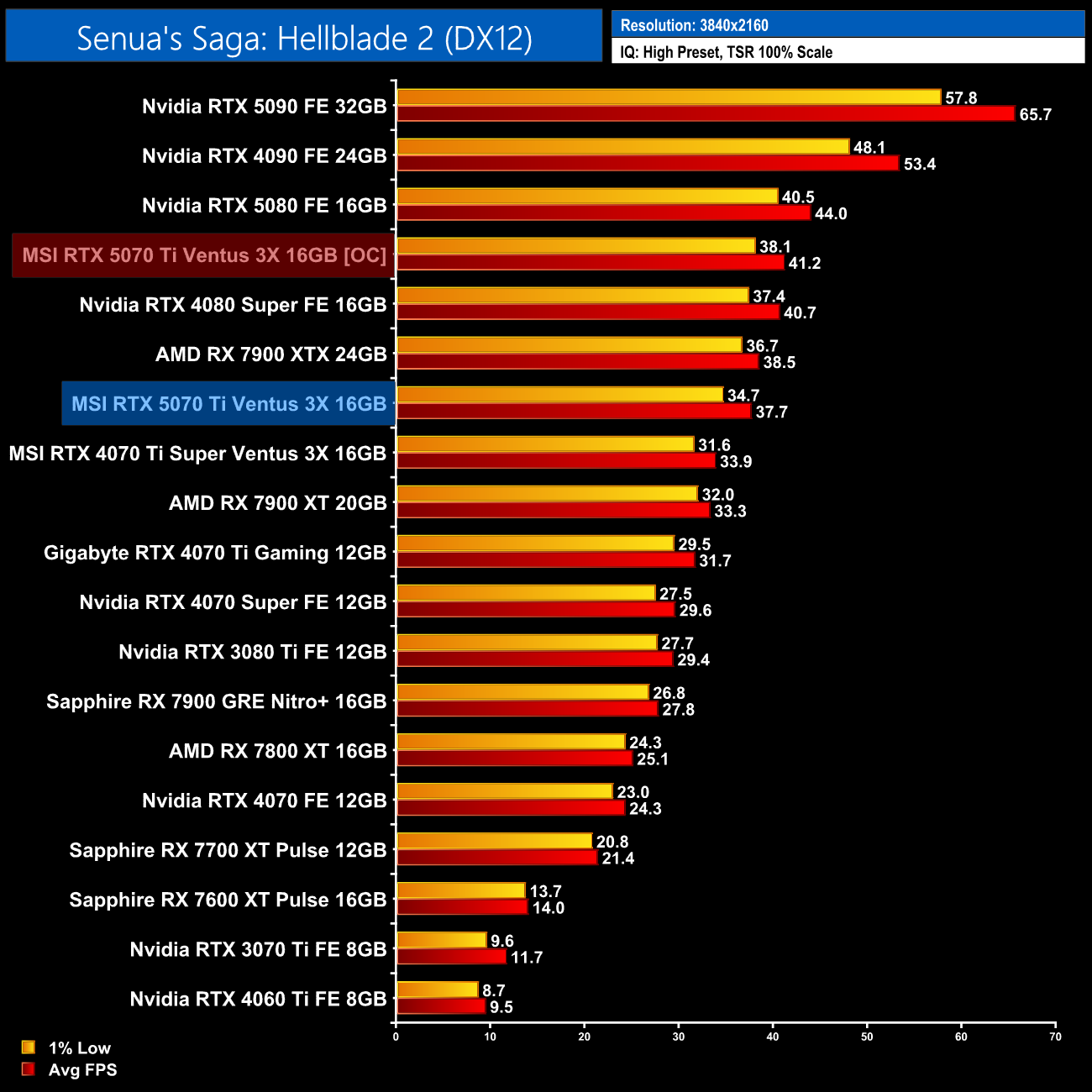 This resulted in big gains in Cyberpunk, with a 12% uplift, though the difference was 7% in A Plague Tale: Requiem, but that's still respectable. In Hellblade 2, we're looking at a 9% performance uplift, so I'd say that is well worth doing if you pick up an RTX 5070 Ti.