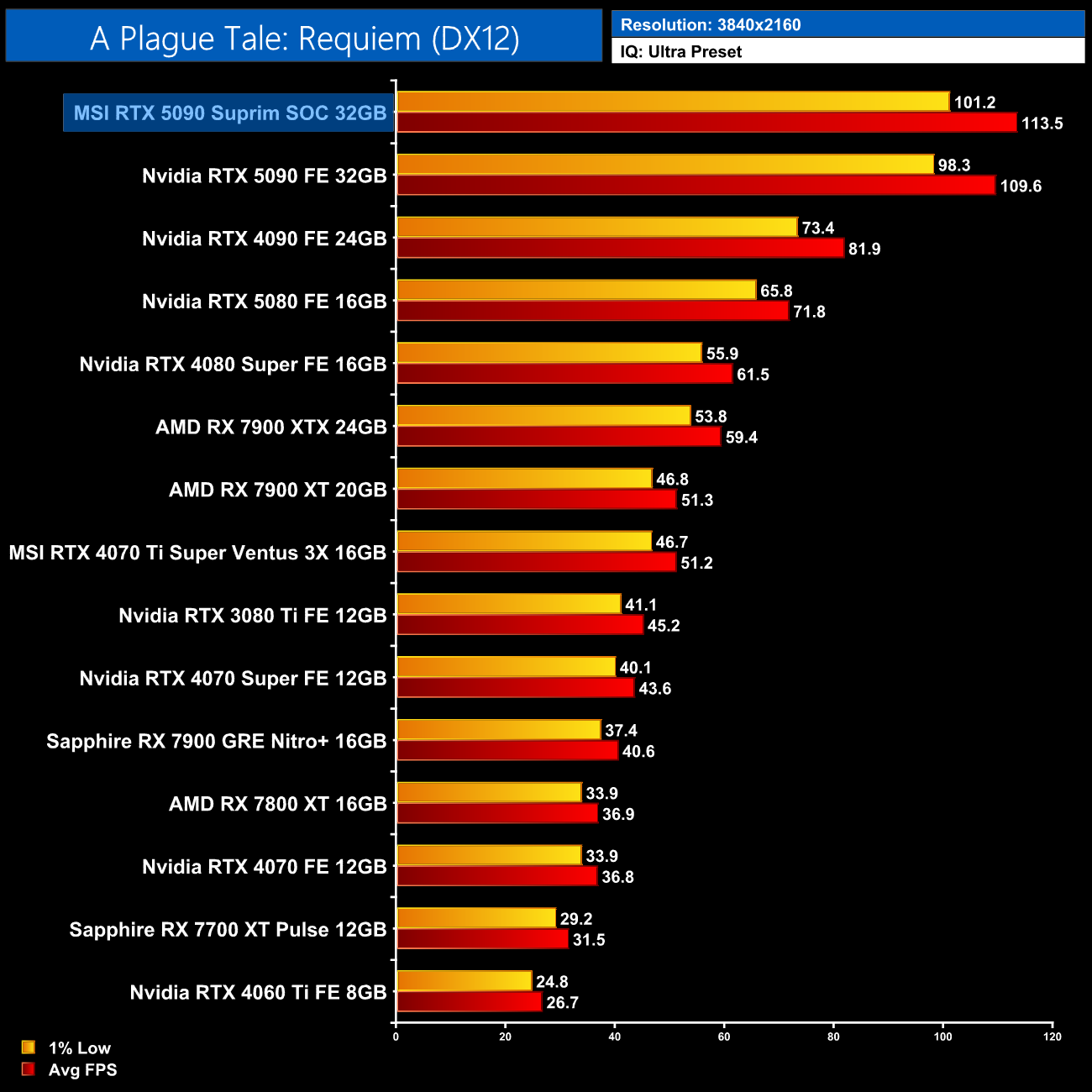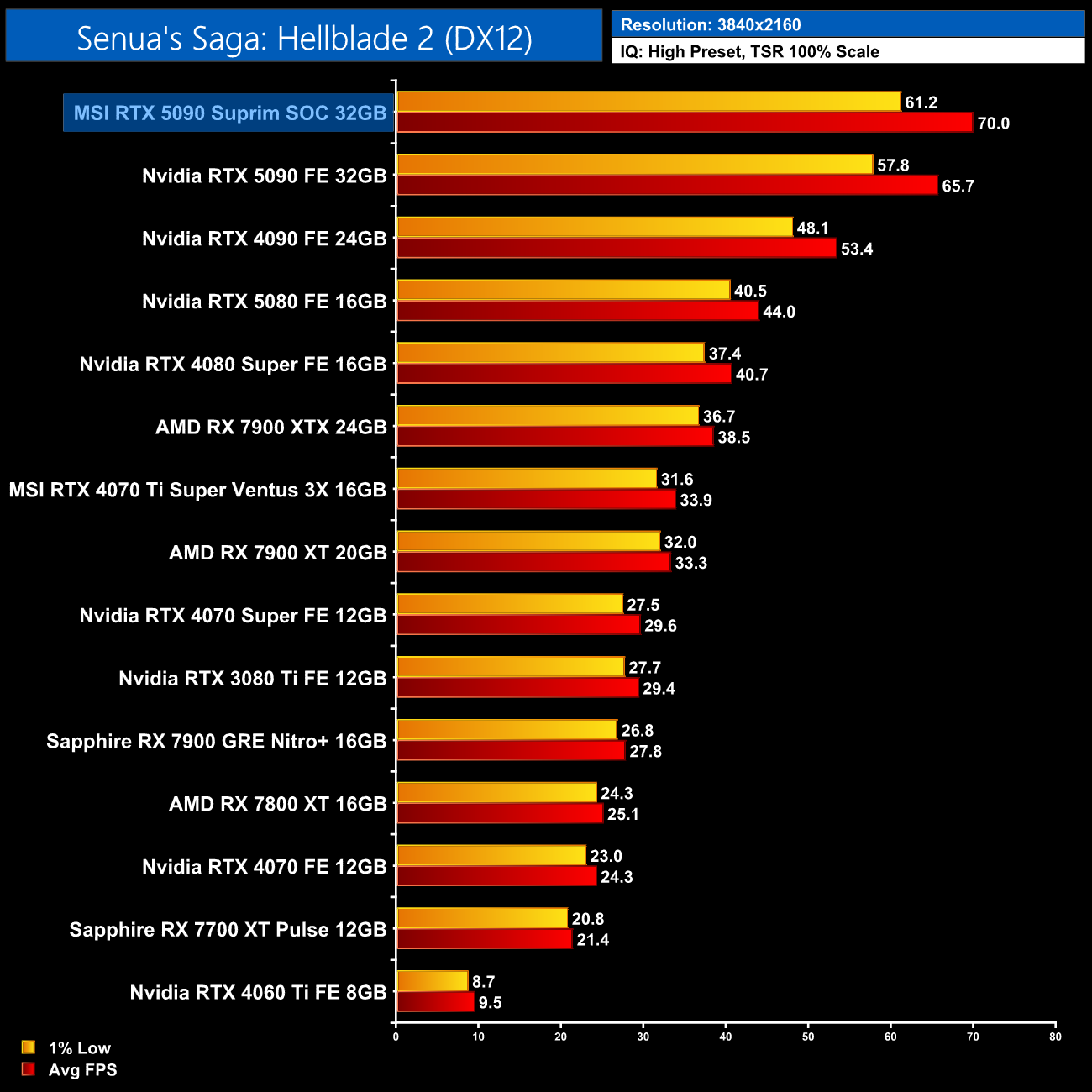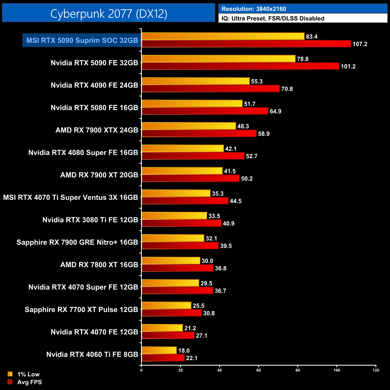 We don't focus too heavily on game benchmarks in our partner cards reviews as performance doesn't tend to change a whole lot when compared to the reference models. With that said, the gains provided by the Suprim were larger than expected – coming in 4-7% faster than the Founders Edition when tested with the Gaming BIOS. It's still not a huge difference, and I'm not sure you'd be able to notice in the real-world, but it's more than nothing.