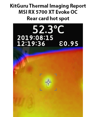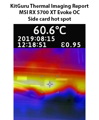 This impressive thermal performance is demonstrated by our thermal imaging camera as well, with hot spots on the card reaching 60C on the side, and 52C on the backplate.