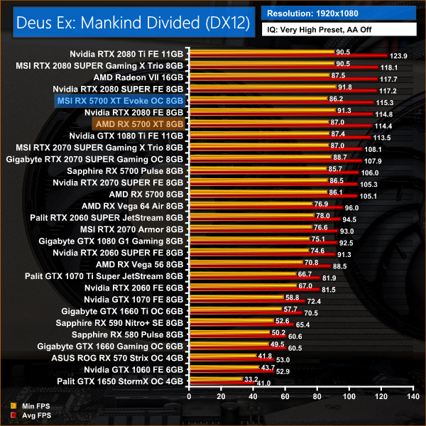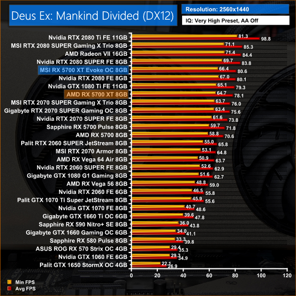 It's a similar story in Deus Ex: Mankind Divided, with another 2% performance improvement for the Evoke OC versus AMD's reference card.