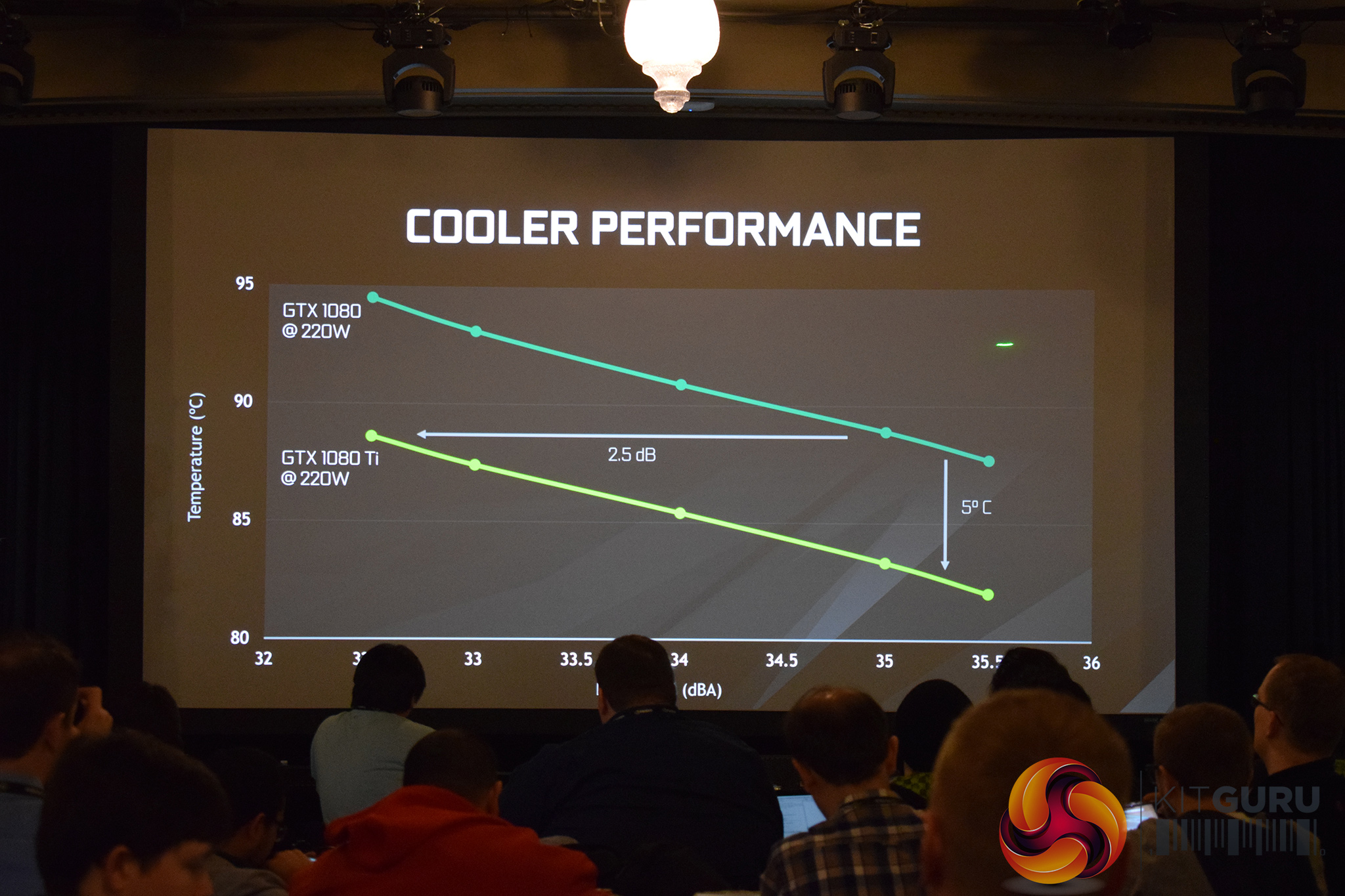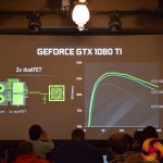 Speaking of performance, the 1080 Ti is helped by the fact that its out-of-the-box boost clock is around 1600MHz, while it was also demonstrated with its core clock running beyond 2GHz, remaining perfectly stable.