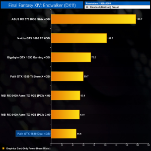 A new game for us is Final Fantasy XIV, using the Endwalker benchmark. This is a pretty old but still very popular engine and the 1630 does manage 60FPS on average here, but with choppier 1% lows across the board. The 1630 is still rooted to the bottom of the chart however, and is 24% slower than the 1050 Ti.