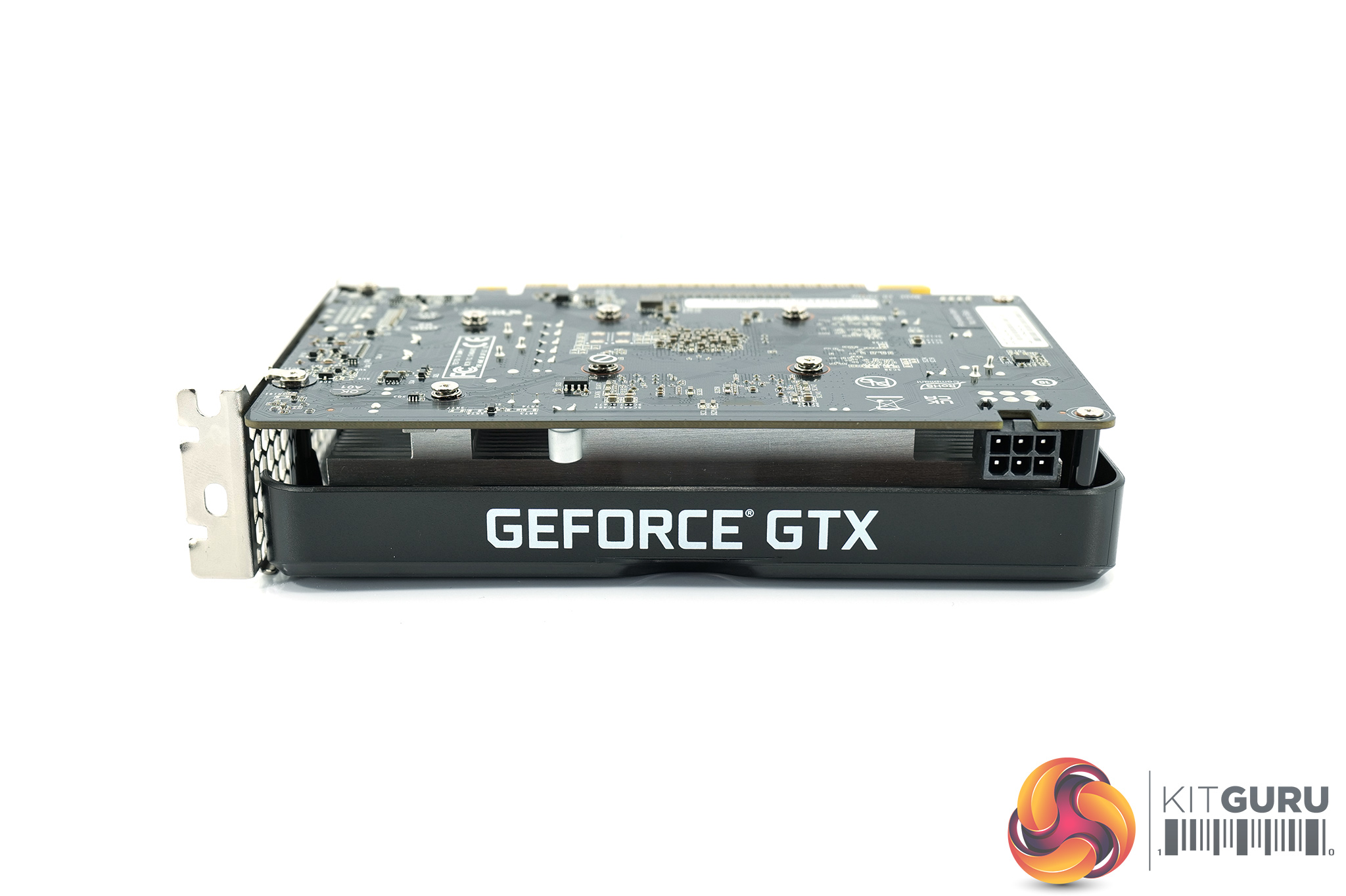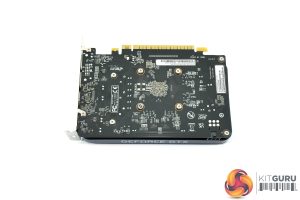 GeForce GTX branding takes pride of place on the front side of the card, while – as expected – there is no backplate used, instead we get a direct view of the back of the PCB.