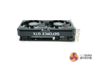 Somewhat bizarrely, Palit has opted to fit the GTX 1630 Dual with an auxiliary PCIe 6-pin power connector. This is somewhat baffling to me as the 1630 has a TGP of 75W, and you can’t even raise the power limit in something like MSI Afterburner – it’s locked at 75W, so the PCIe slot alone should be able to deliver all the power the card needs.
