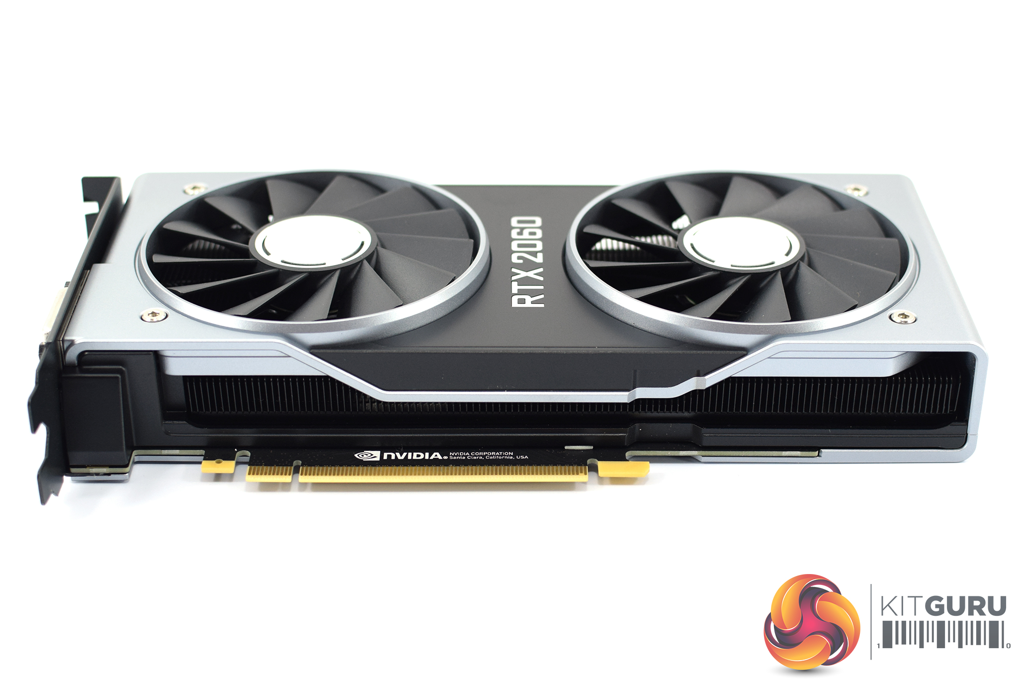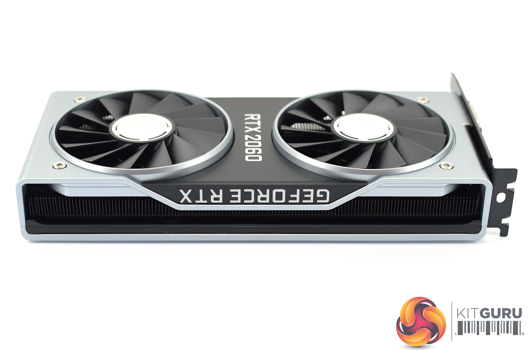 The silver backplate uses the same design as all the other 20-series cards, with the card name – ‘RTX 2060' – placed right in the middle, surrounded by some lines etched into the metal which adds some interest.