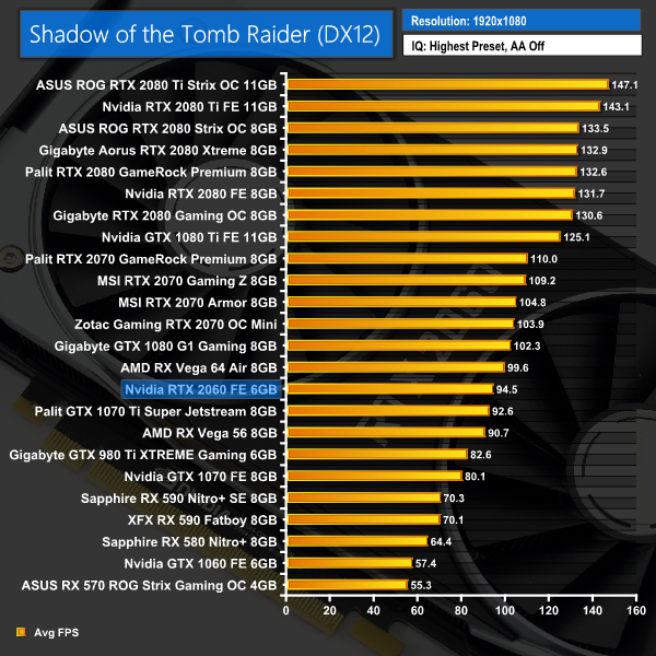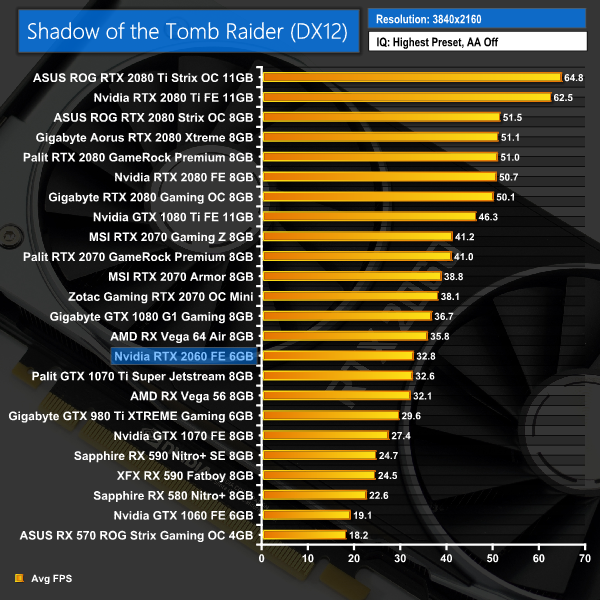 Shadow of the Tomb Raider continues this trend, as we again see the RTX 2060 edge ahead of the GTX 1070 Ti at 1080p, 1440p and 4K.