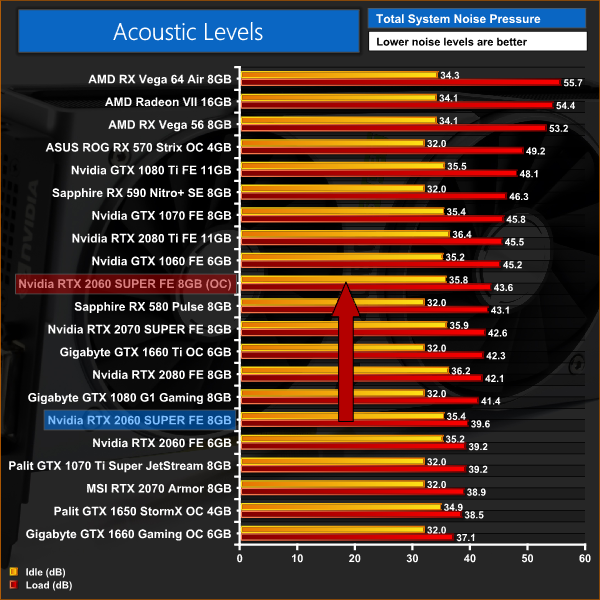 Here, we take a further look at the impact of our overclock, looking at the increased temperatures, acoustics and power draw.