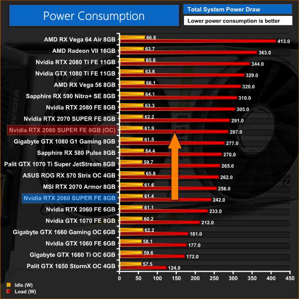 Power draw also increased by more than I was anticipating, with a 45W increase at the wall. Considering the gains we saw in-game, I'd say it was worth it.