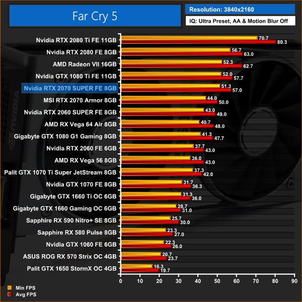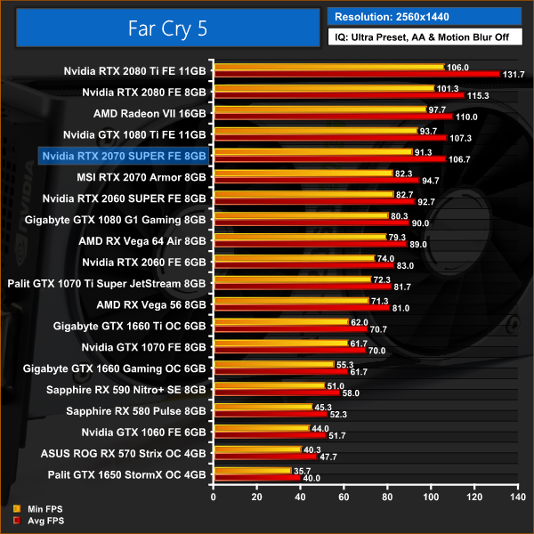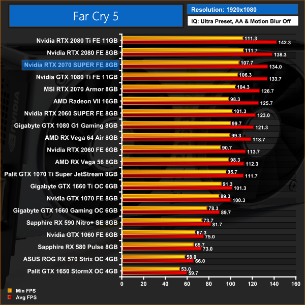 Far Cry 5, at 1080p, gives RTX 2070 SUPER its first win over GTX 1080 Ti, but it falls behind again at 1440p and 4K. Aside from that, it is business as usual for the 2070 SUPER – meaning, yes, it performs right between the 2070 and 2080 as expected.
