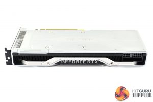 Looking on the card as it would be once installed in your case, the ‘GeForce RTX' branding is clearly visible and this lights up green once powered on. No RGB here.