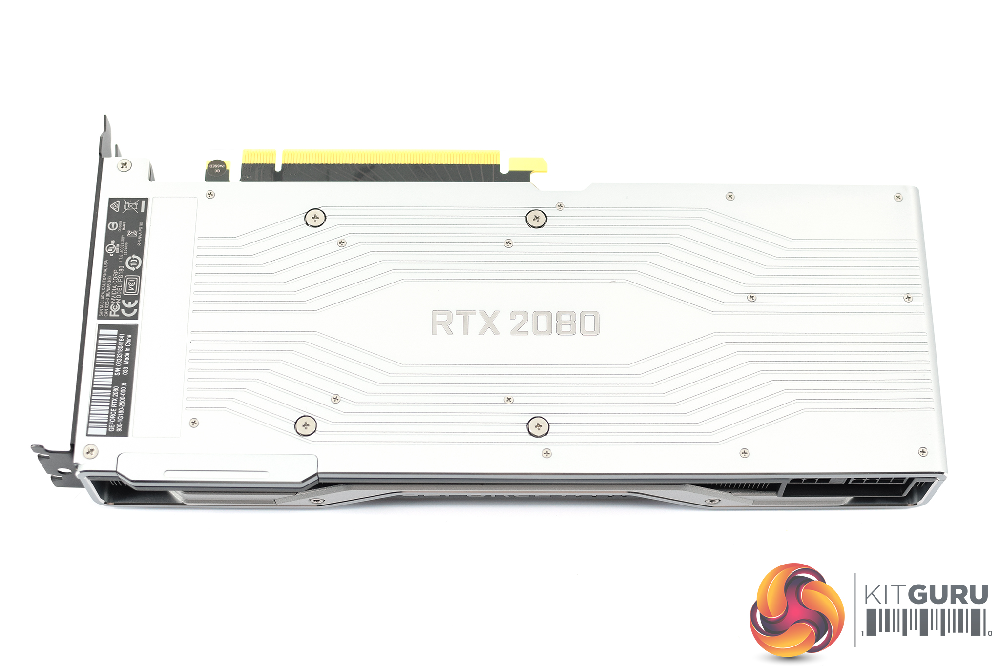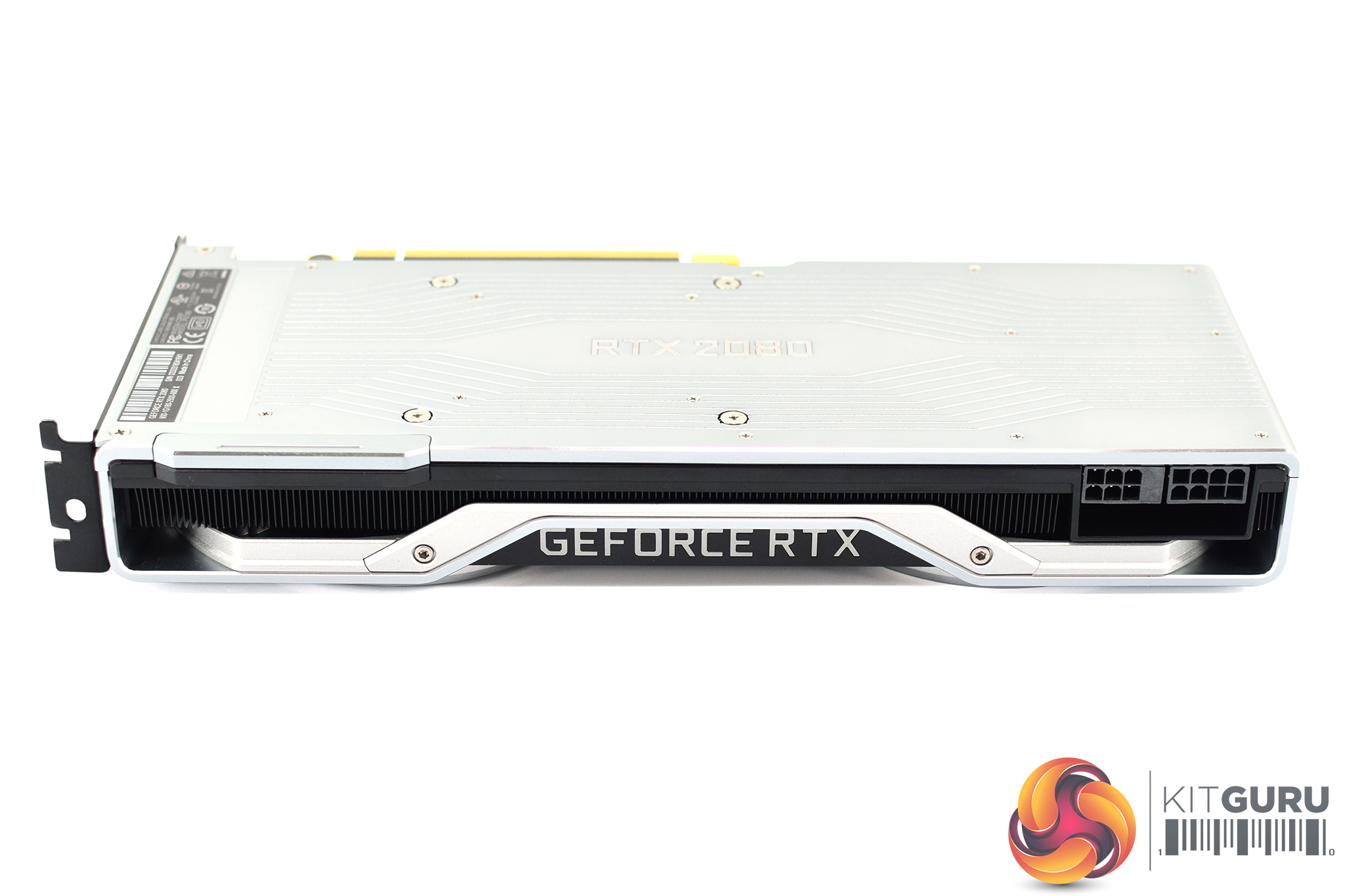 As with previous Founders Editions, the RTX 2080 does sport a backplate – but it is now silver, rather than black. I think it looks fantastic, and it should also help with heat dissipation. It is made from more aluminium, and has a subtle but interesting design with lines etched into the metal, which bend around the RTX 2080 branding in the middle of the backplate.