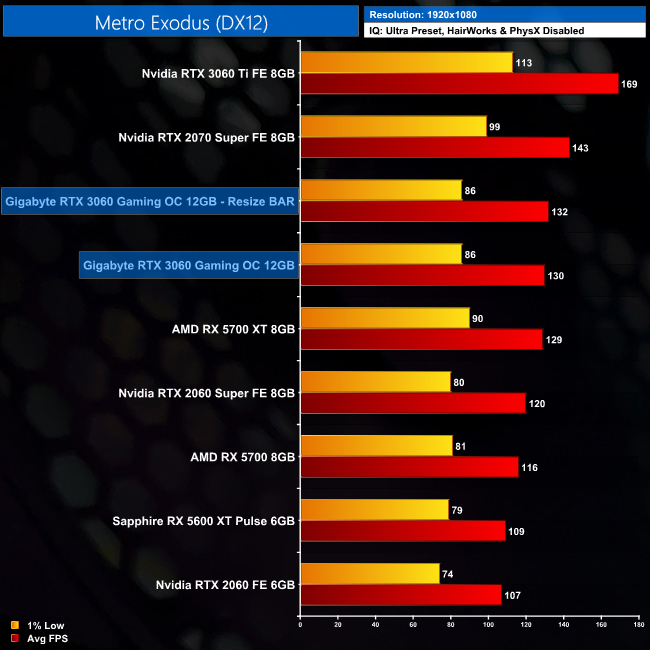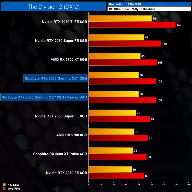 This means if a game isn't on the ‘allow' list, resizable BAR may as well be disabled as it won't do anything. Funnily enough, I had already done all my testing before finding out about this list, and the results clearly verify this information – any game I tested that wasn't on the list showed absolutely no change in overall performance.