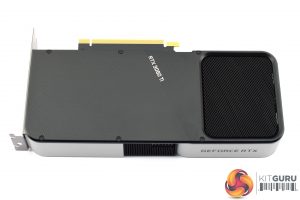 The front side of the card is mostly just bare metal, but we can see the GeForce RTX branding towards the end of the card.
