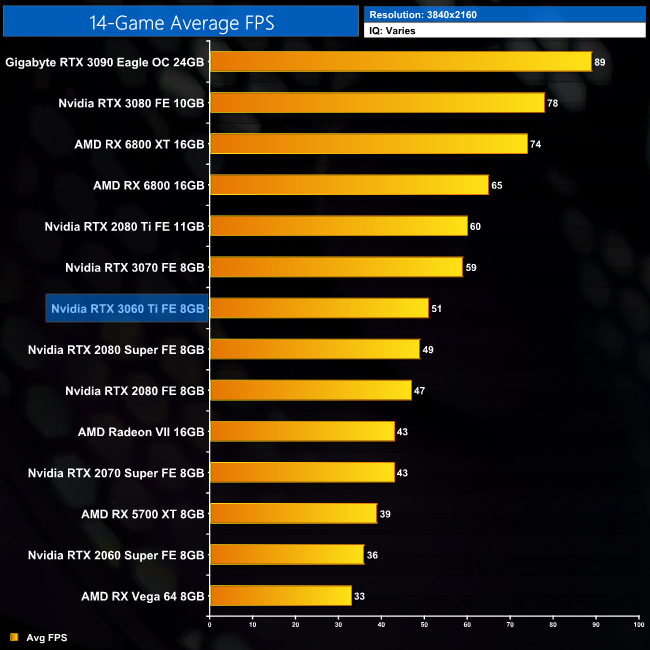 Looking at the big picture overview, Nvidia's claims for the RTX 3060 Ti do hold true. At 1080p, this Ampere GPU is 2% faster than the 2080 Super, and 34% faster than the 2060 Super.