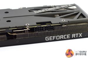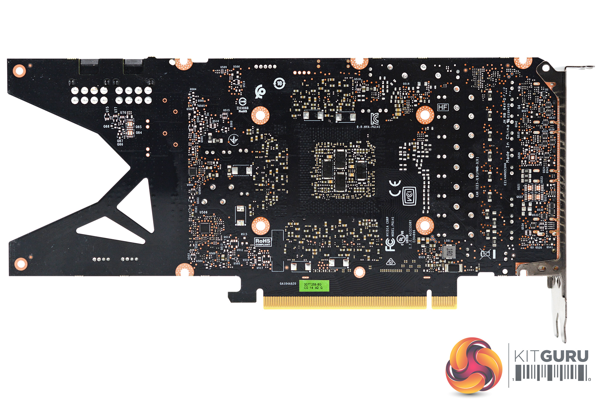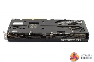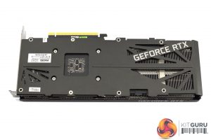 The backplate is also plain black, and it is made of metal. We can see a cut-out around the back of the GPU die, while there are also a few triangular cut-outs at the end of the card to allow air to pass directly through the heatsink.