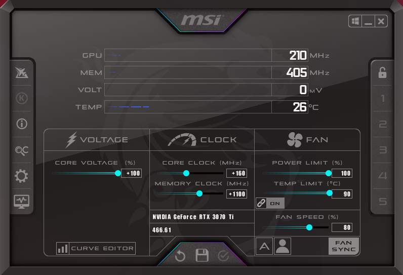 For our manual overclocking tests, we used MSI Afterburner. Our best results are as below.