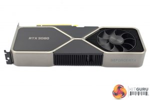 Speaking of the back of the card, this features the RTX 3080 branding printed towards the I/O bracket, with the fan taking up the right-hand side. It's all very tastefully done, with nothing looking out of place. Even the screws are hidden under small tabs, giving the card a very polished look.