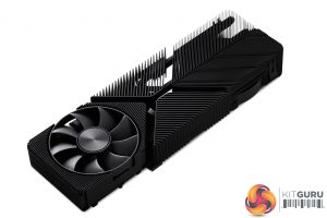 Of course, the fan layout has been radically overhauled, with one 85mm on the underside of the card pushing air through the heatsink and straight out of the case via the I/O bracket. The fan on the top of the card, next to the backplate, pulls air through the heatsink and exhausts it out into the CPU/memory area of the motherboard/chassis, where the system's exhaust fans can expel the heat.