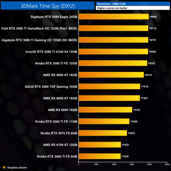 While our primary focus so far has been on the gaming performance of the RTX 3080 Ti Founders Edition, here we include a select sample of 3DMark and 4K gaming benchmarks, testing all four RTX 3080 Ti cards featured in this review.