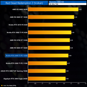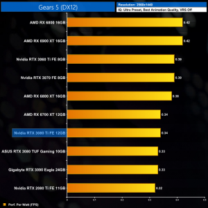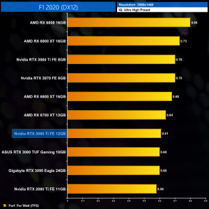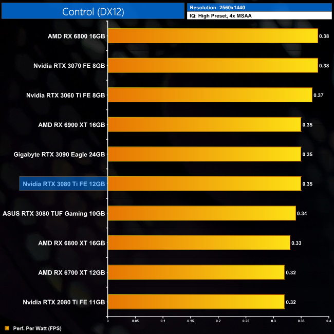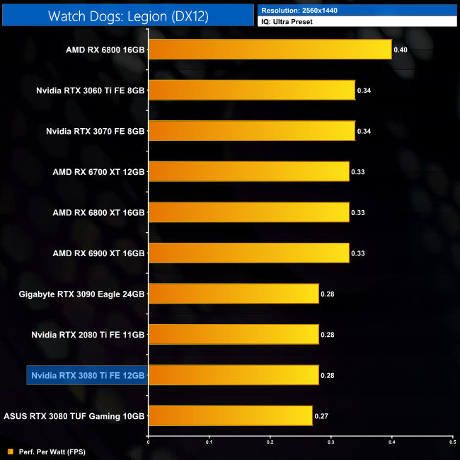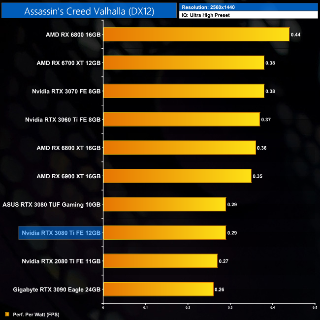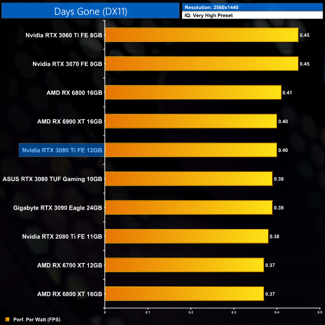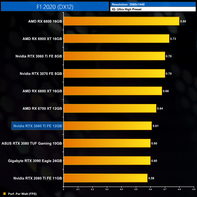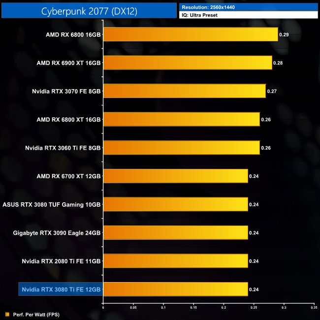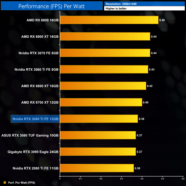 Power efficiency is better at 1440p, with less of a a gap between the RTX 3080 Ti and the likes of the RX 6700 XT. It's also fractionally more efficient than the RTX 3090 at this resolution.