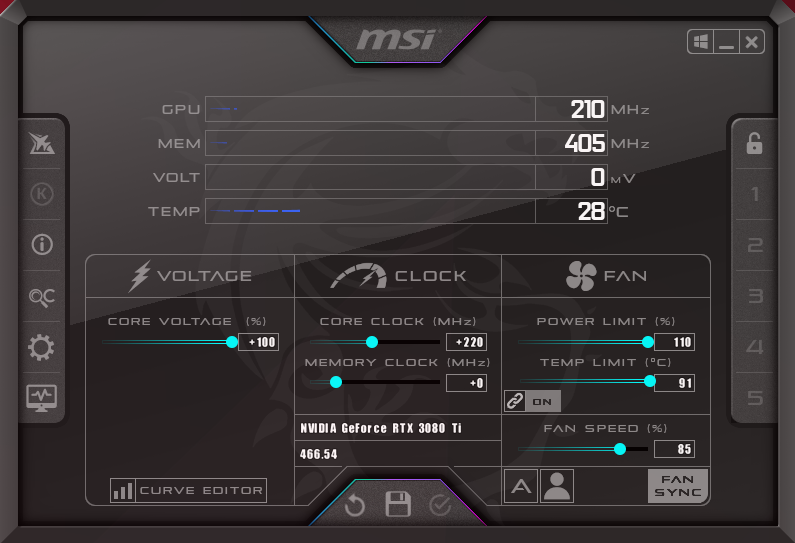 For our manual overclocking tests, we used MSI Afterburner. Our best results are as below.