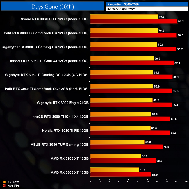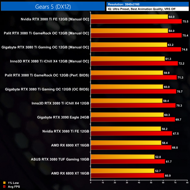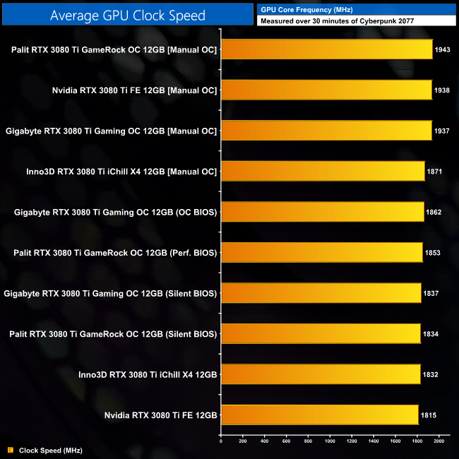 Even the likes of the Palit and Gigabyte cards didn't massive increases to frame rates, with anything from 4-9% being observed in our tests. This really is just typical of Ampere, with fairly limited headroom overall.