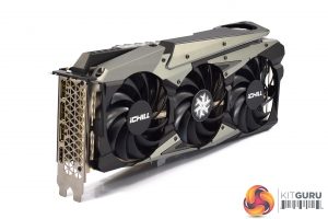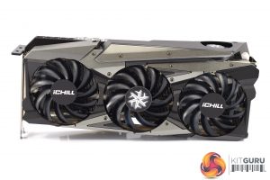 We can also note three 90mm fans used, but the iChill X4 has a party trick – it actually has a fourth fan placed on the front side of the card, used to provide extra cooling for the VRM. It's quite unique.