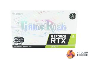 As for the Palit RTX 3090 Ti GameRock OC, this also ships in a white box, with the GameRock logo emblazoned on the front – I always get a blast of nostalgia for Guitar Hero whenever I see this font…