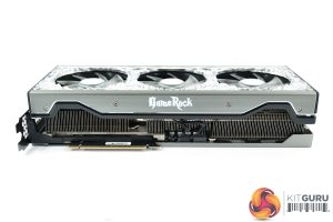 Looking at the card itself, we can see the same overall design as the RTX 3090 GameRock OC that we reviewed last year. That means we have easily the most ‘blinged-out' shroud design I have ever seen, with almost the entirety of the shroud acting as a big RGB LED diffuser – be sure to watch our video review to see this in action.