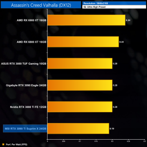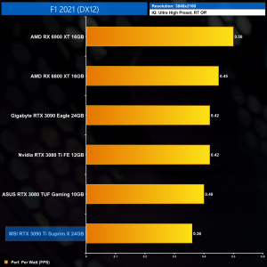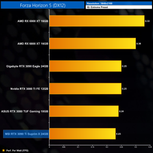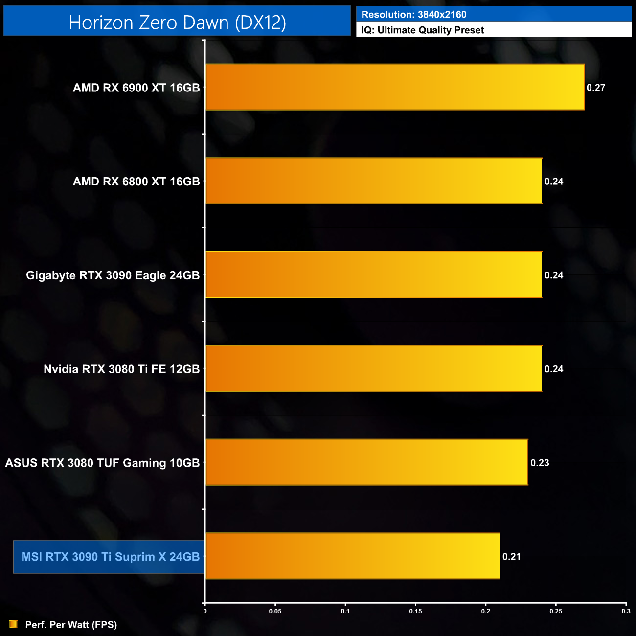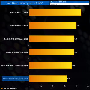 Using the graphics card-only power draw figures presented earlier in the review, here we present performance per Watt on a per-game basis for all twelve games we tested at 2160p (4K).