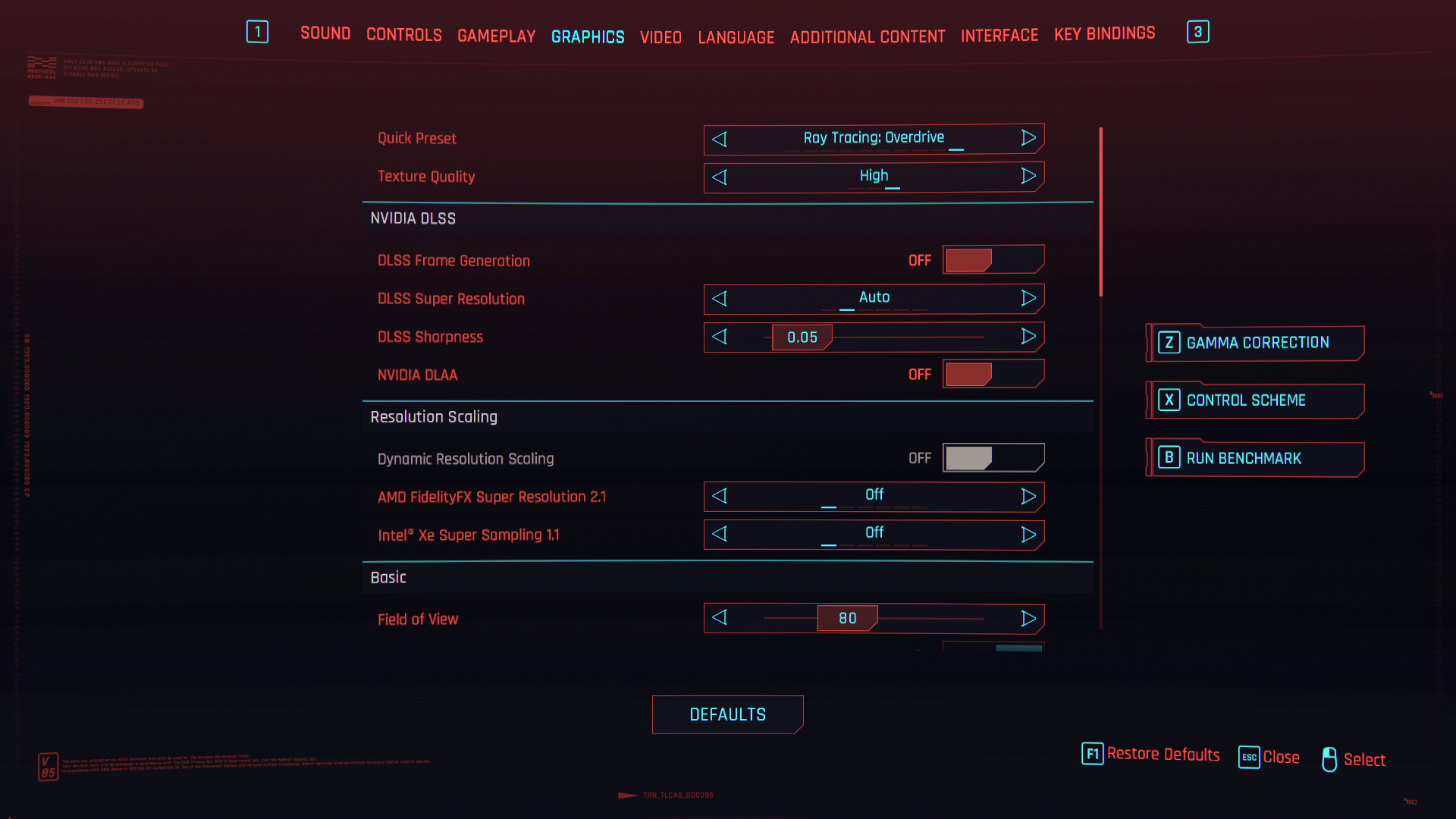 Engine: REDengine 4. We test using the RT Overdrive preset. DLSS/FSR/XeSS are set to their Balanced modes. DXR API.