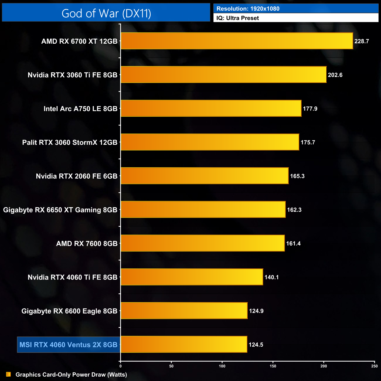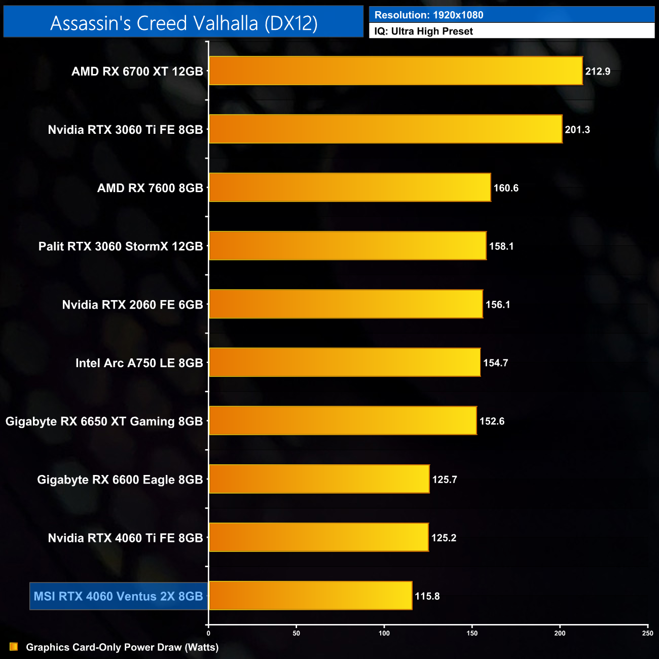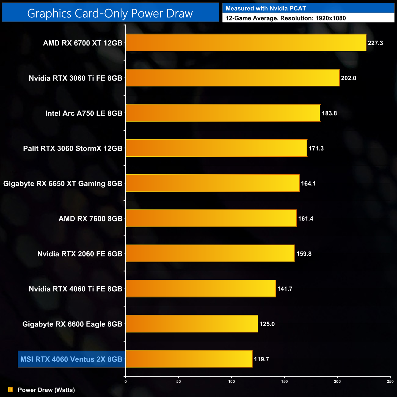 Here we present power draw figures for the graphics card-only, on a per-game basis for all twelve games we tested at 1080p. This is measured using Nvidia's Power Capture Analysis Tool, also known as PCAT. You can read more about our updated power draw testing methodology HERE.