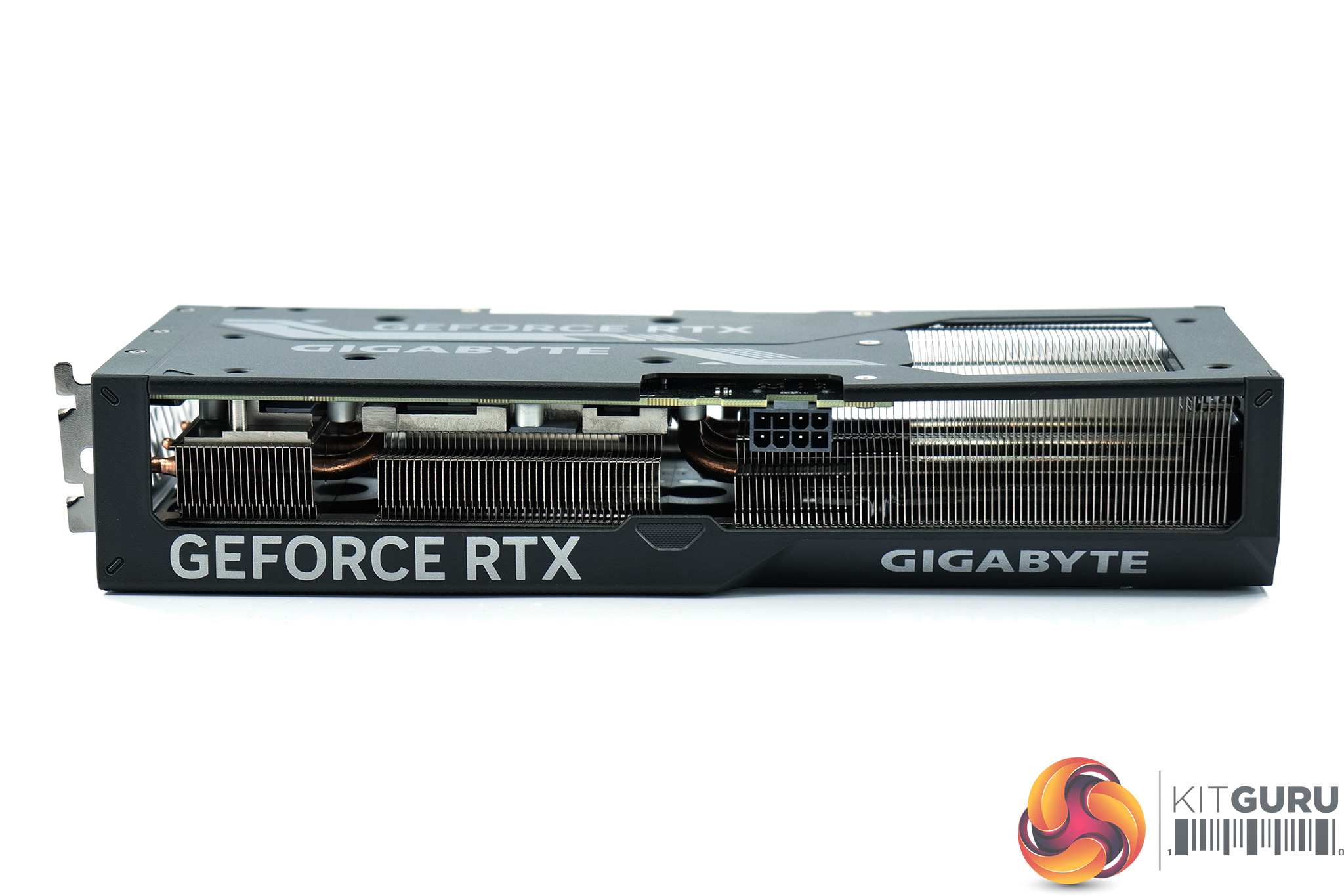 Gigabyte's cooler is relatively basic, but considering the power demands are much lower than other 40-series cards, it should be absolutely fine. Three 6mm copper heatpipes make direct contact with the GPU die. Three memory modules also contact with these heatpipes, while the other three meet with an aluminium baseplate. Separate baseplates are also used to contact the MOSFETs.