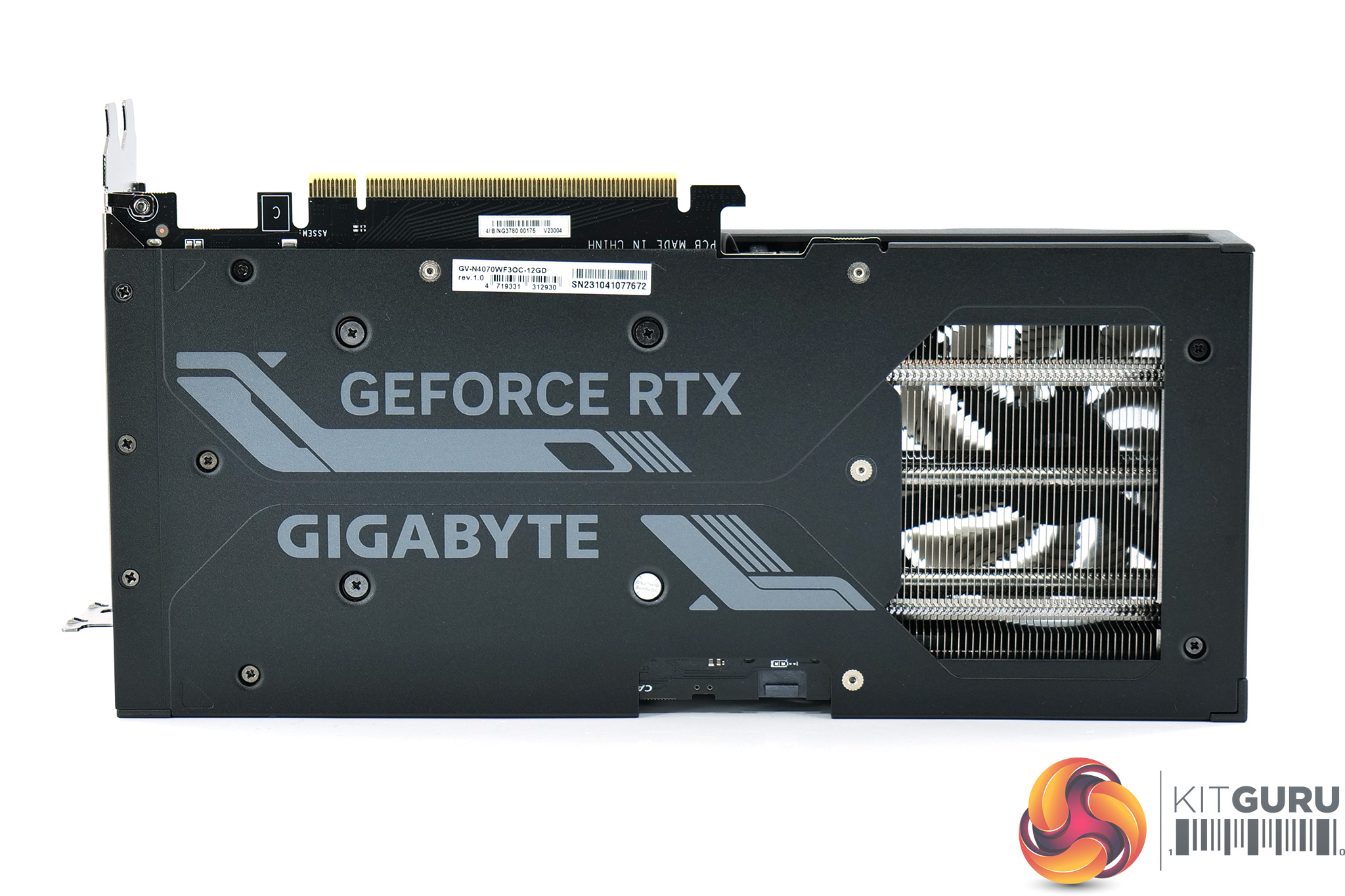 As for the backplate, I was pleased to see this is still made from metal despite the Windforce being an MSRP card. It's mostly black, with a couple more logos and some grey accents to add a bit of visual interest.
