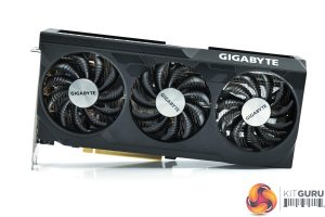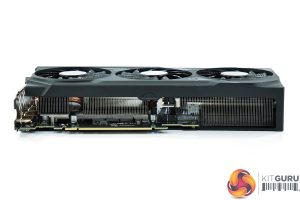 The graphics card itself is a fairly plain design, being almost entirely matte black with not a hint of colour anywhere – and that includes RGB, something which is not present on the Windforce. The shroud is made from plastic, but it feels reasonably sturdy in the hand.