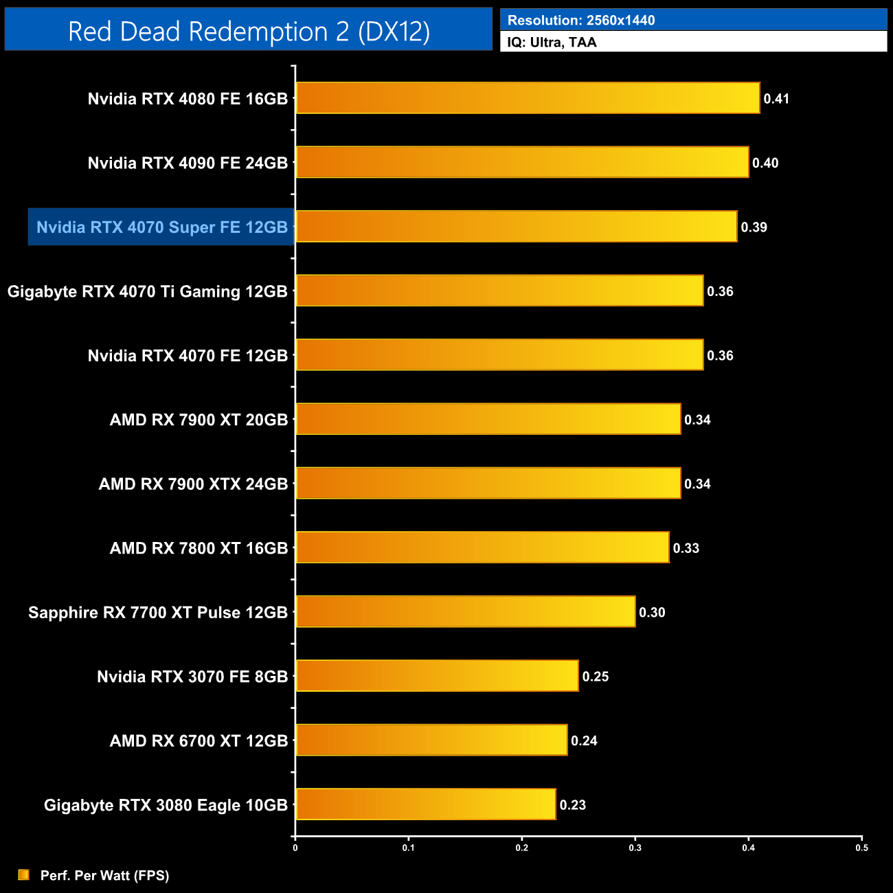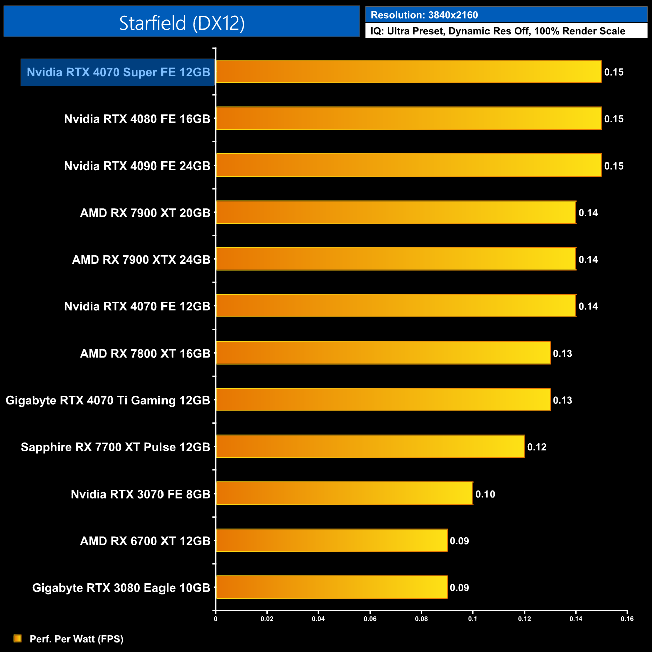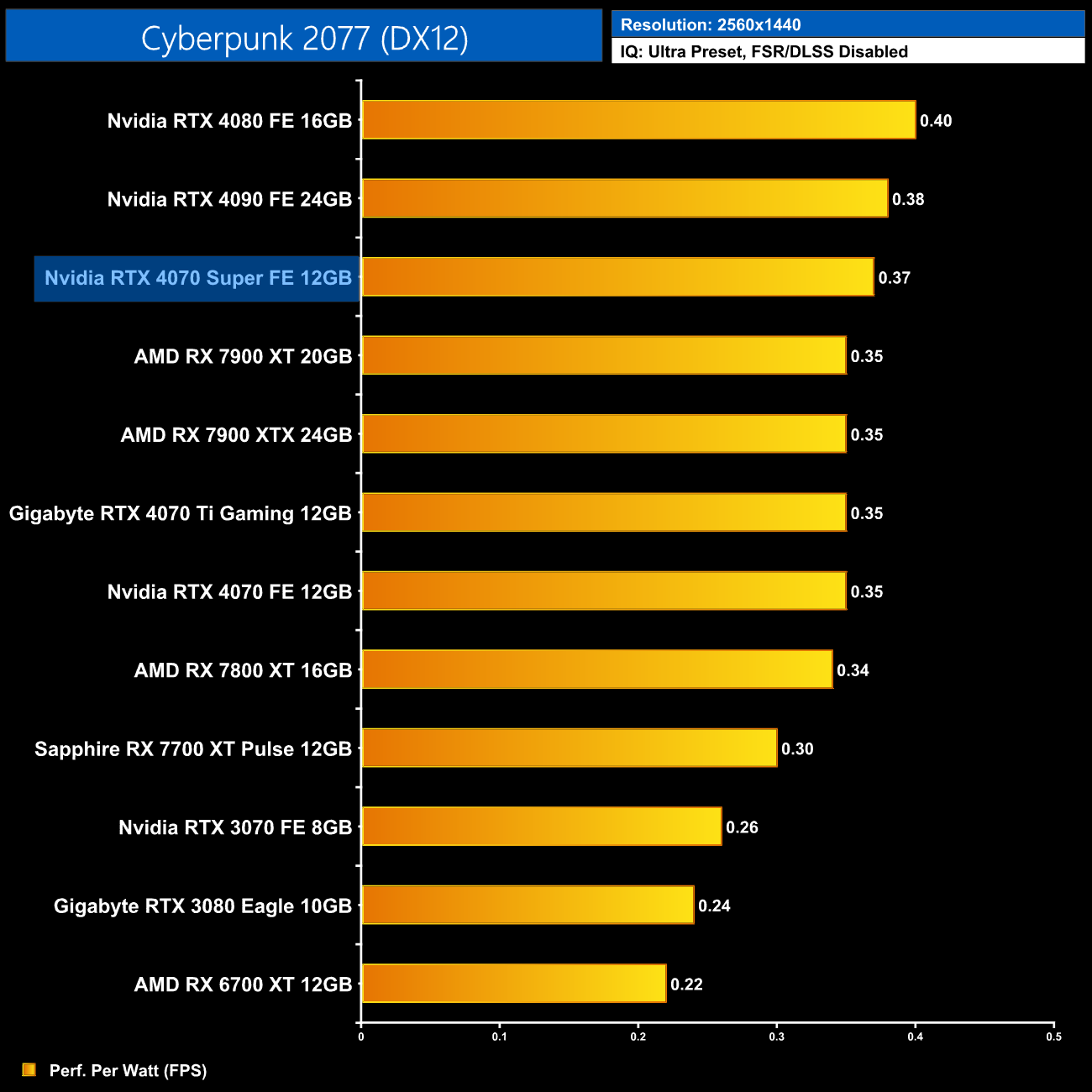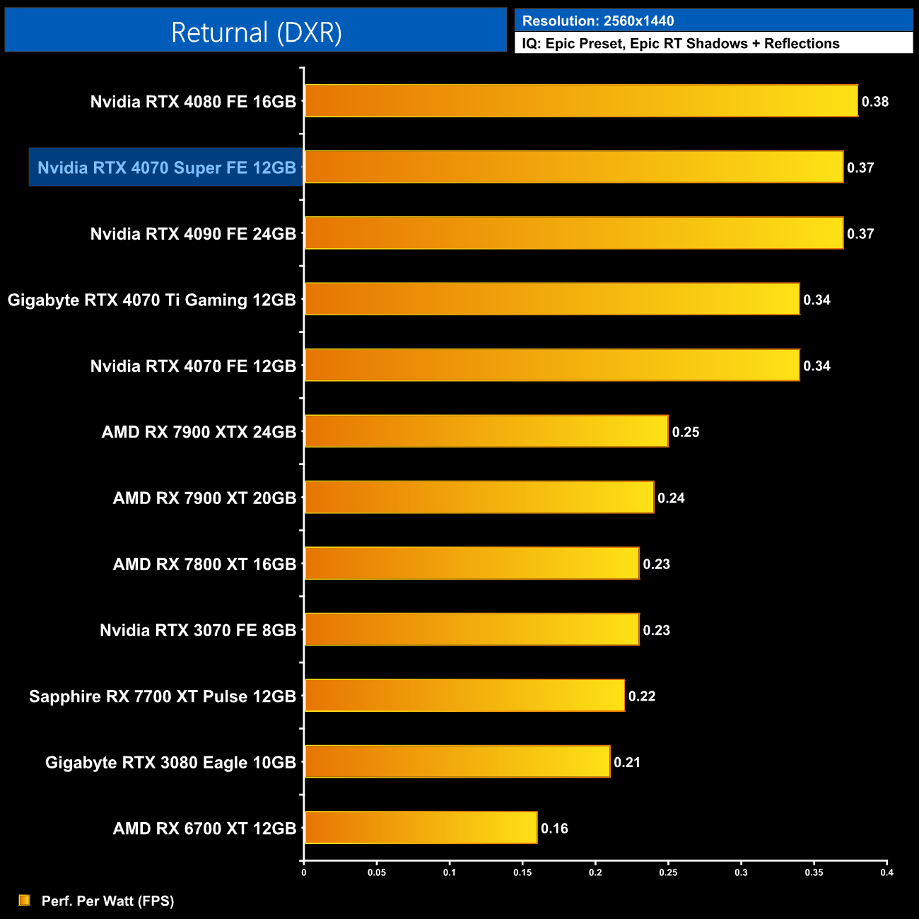 Lastly, at 4K, we see very similar results to the 1440p data, with the 4080 and 4090 still being a touch more efficient than the 4070 Super, but this new GPU is right up there.