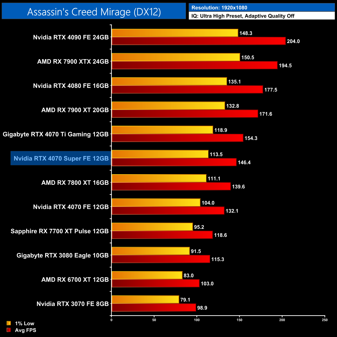 - Nvidia GPUs (except RTX 4070 Super) were benchmarked with the 546.33 driver.