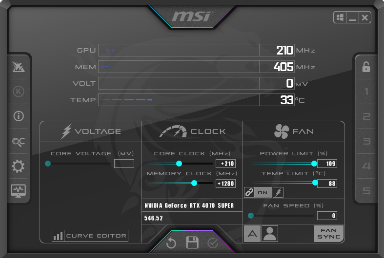 For our manual overclocking tests, we used MSI Afterburner. Our best results are as below.