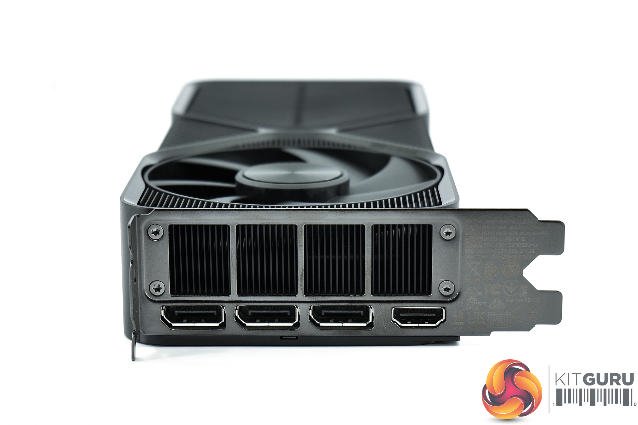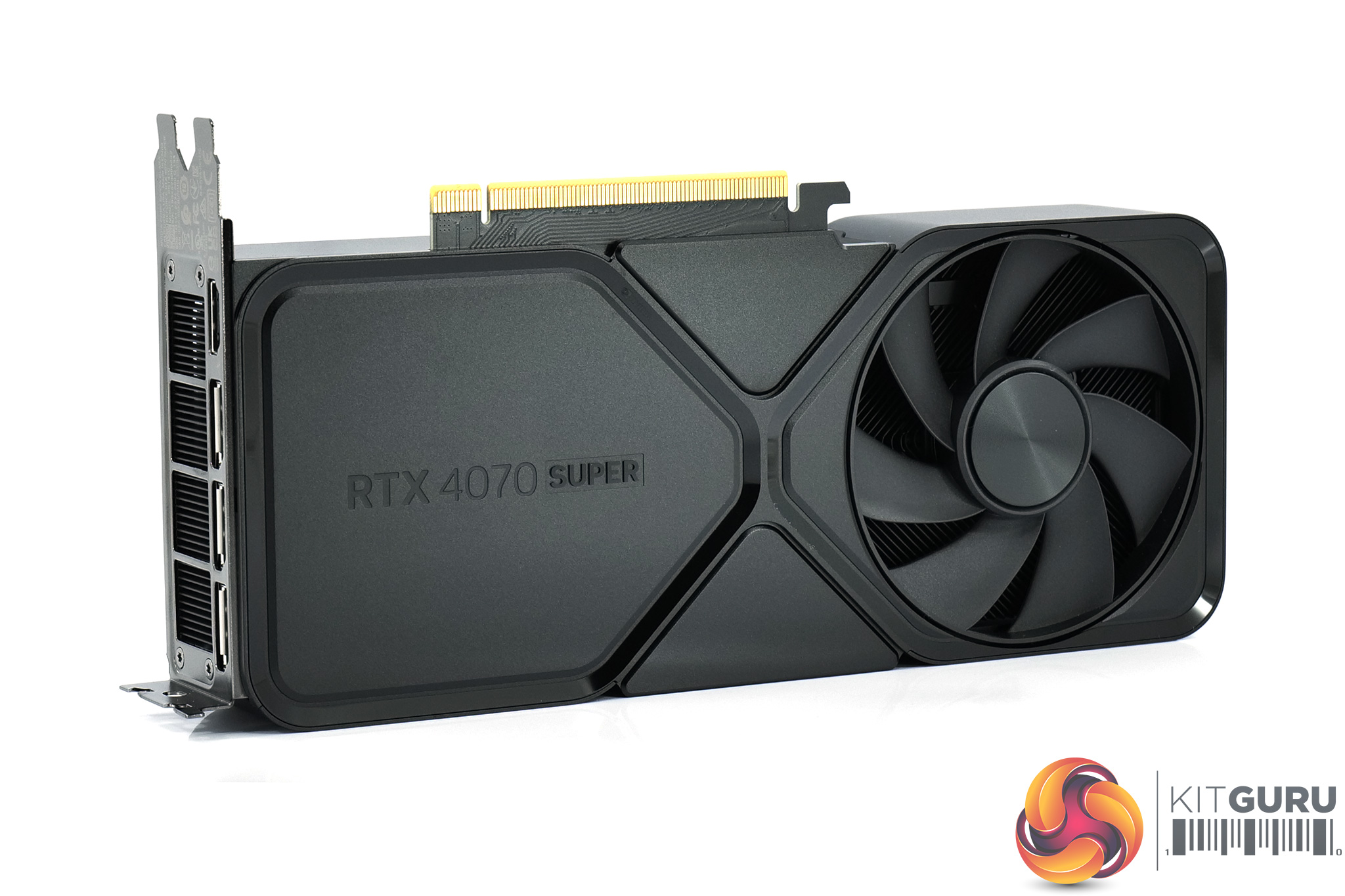 The front side of the card is home to the GeForce RTX logo, though this does not light up once powered on. The backplate is very stealthy and understated, you almost can't read the black RTX 4070 Super text – in my opinion this is the best-looking Founders Edition Nvidia has ever made.