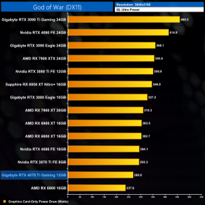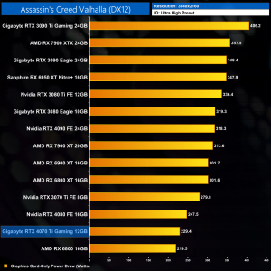 Up at 1440p, power draw does increase as expected, up to an average of 242W, though that's still about 45W below TGP. Even then, power draw is only 15W, or 6%, lower than the RTX 4080, despite the 4070 Ti being significantly slower, so that will have some implications for efficiency which we will get to shortly.