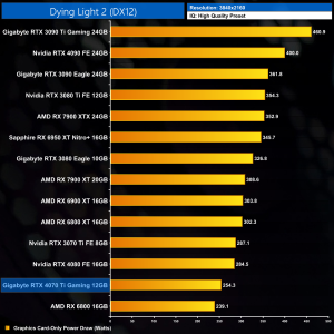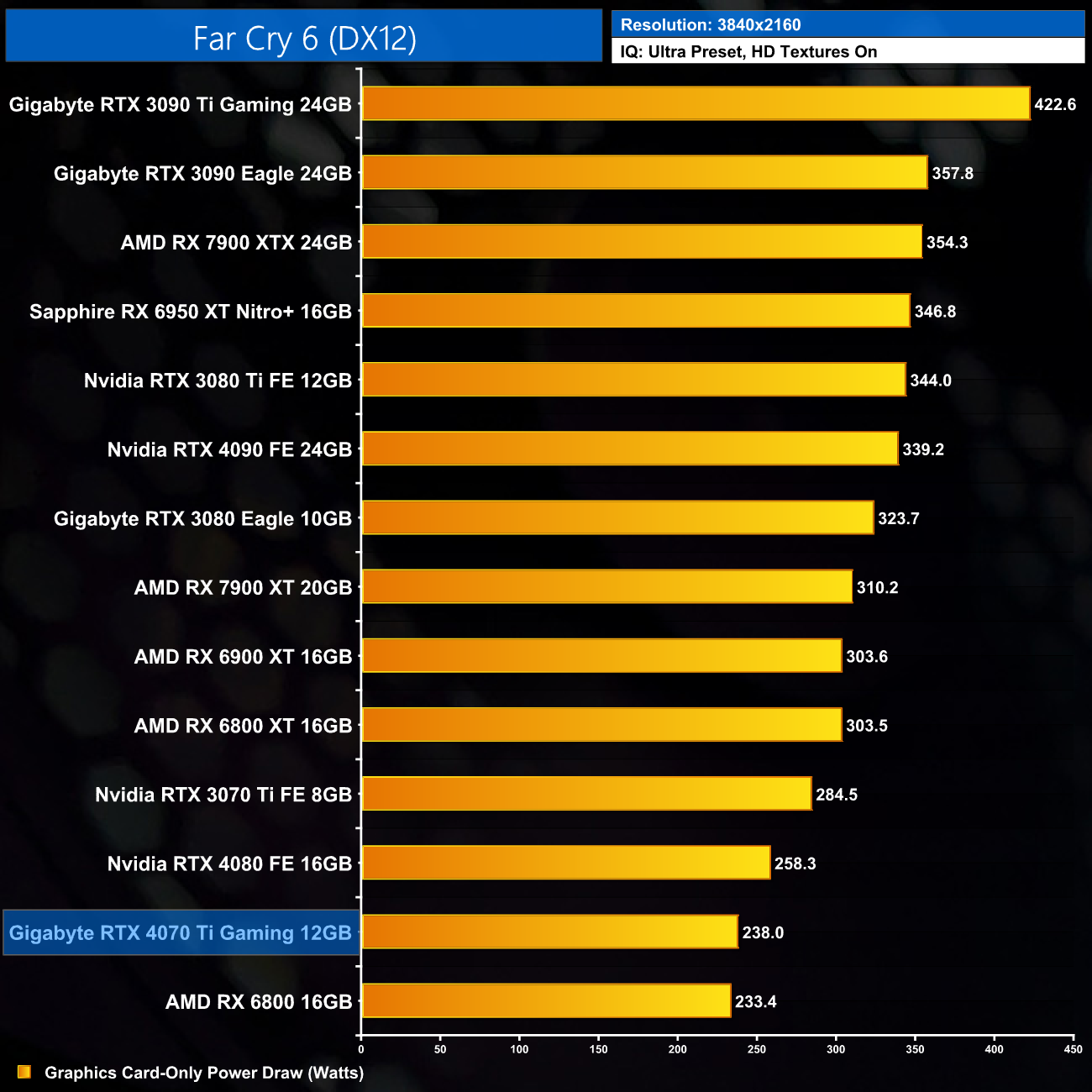 Power draw of the 4070 Ti, however, is slightly higher than I would have hoped considering the performance levels. To be clear, it almost always drew less power than its 285W TGP in our testing, but the difference in power between itself and the RTX 4080 was never particularly significant.