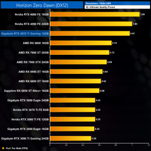 Using the graphics card-only power draw figures presented earlier in the review, here we present performance per Watt on a per-game basis for all twelve games we tested at 1080p.