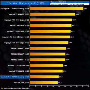 Lastly, we close our benchmarks with a look at Total War: Warhammer III. At 1440p, the RTX 4070 Ti is able to deliver over 115FPS on average, making it 7% slower than the RTX 3090 Ti.