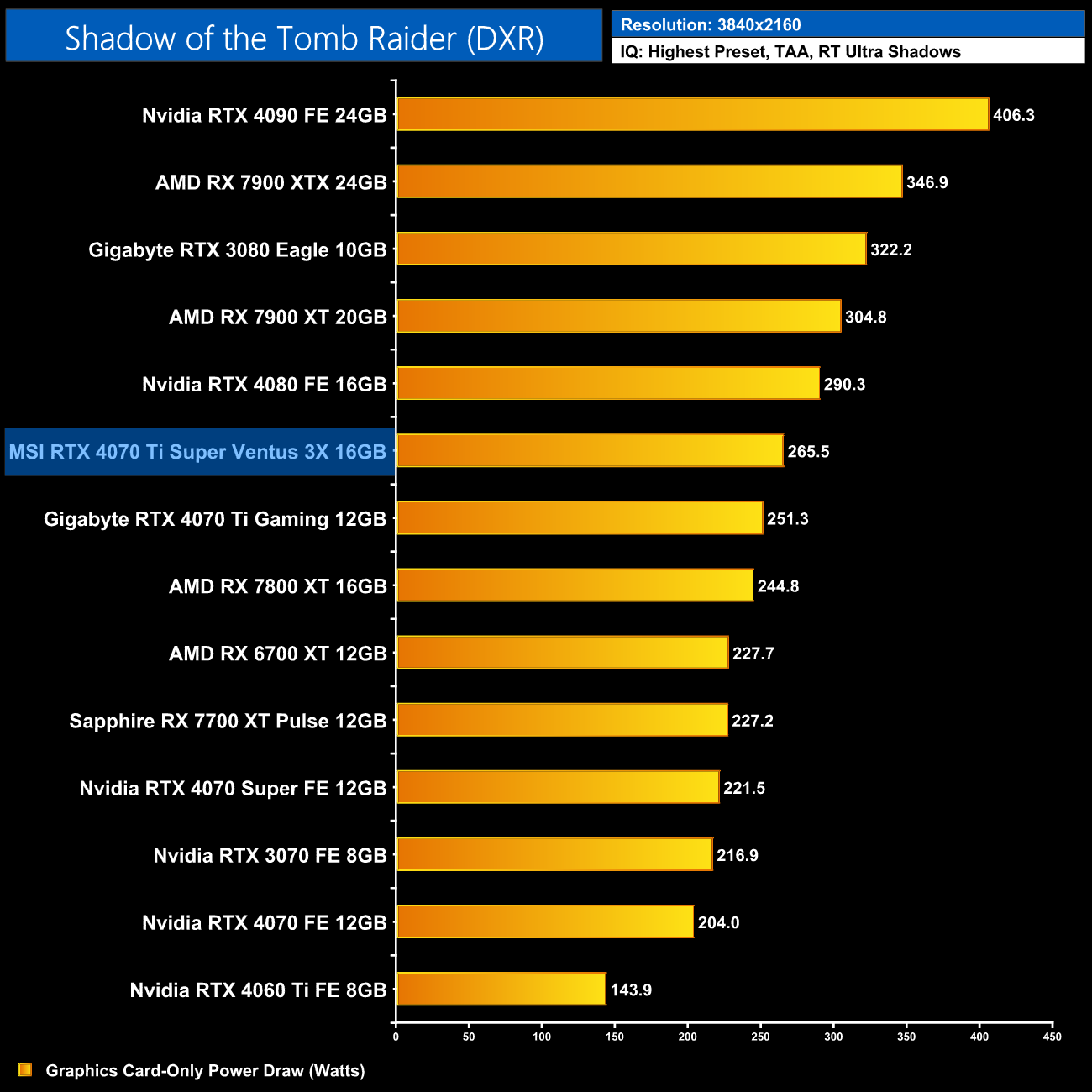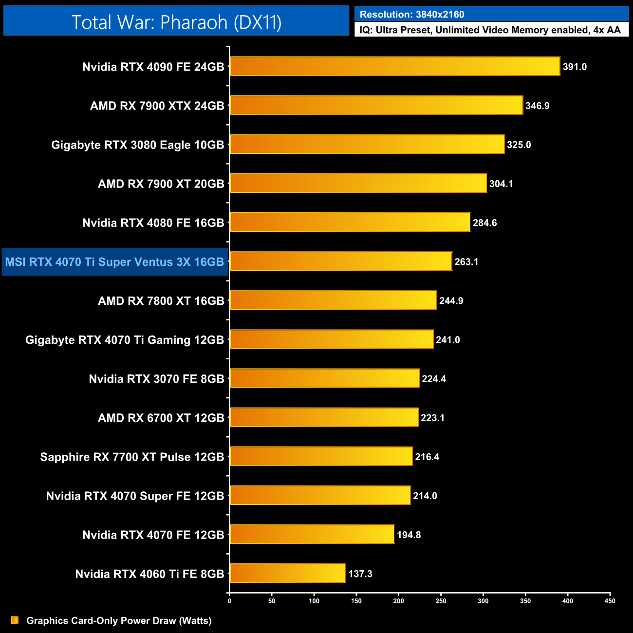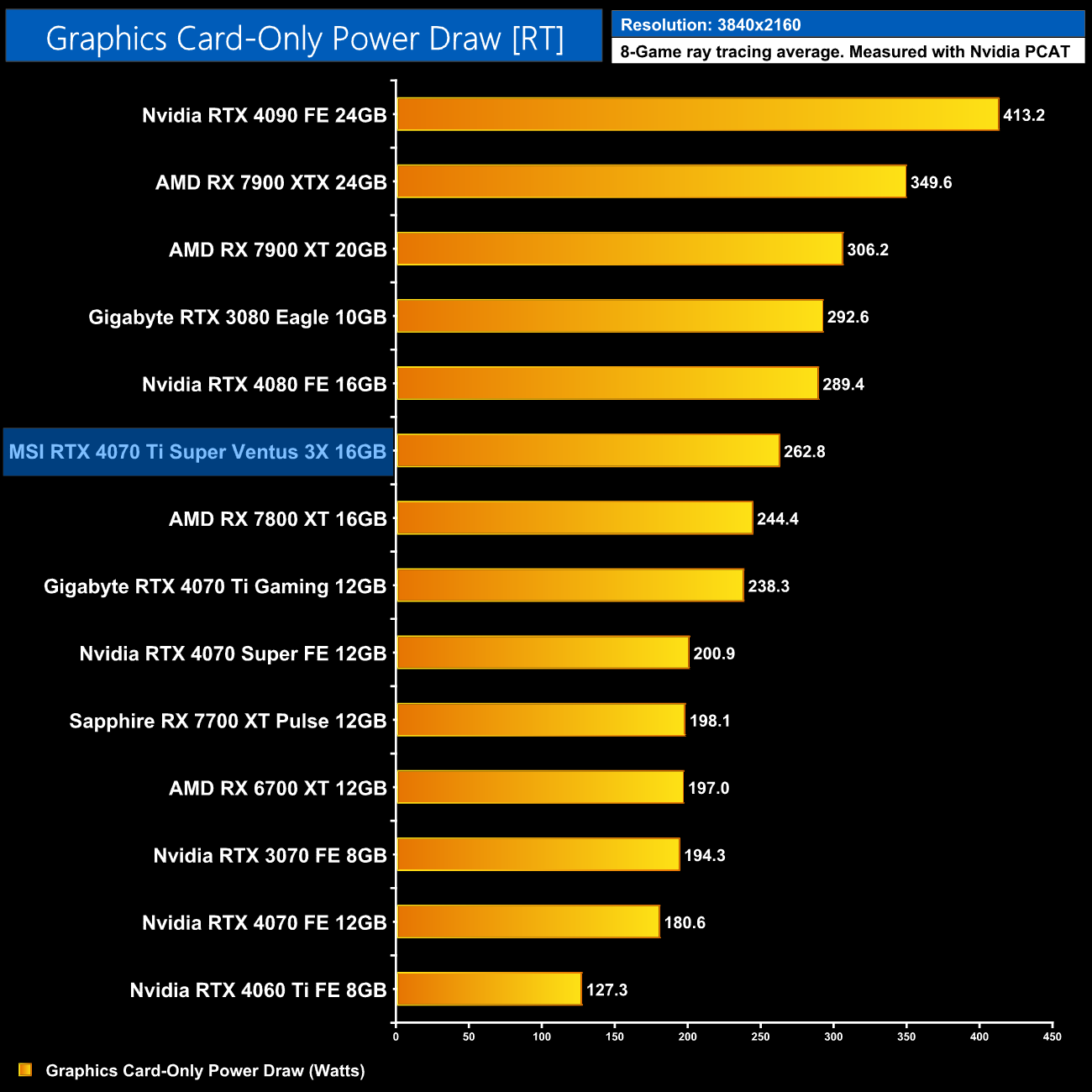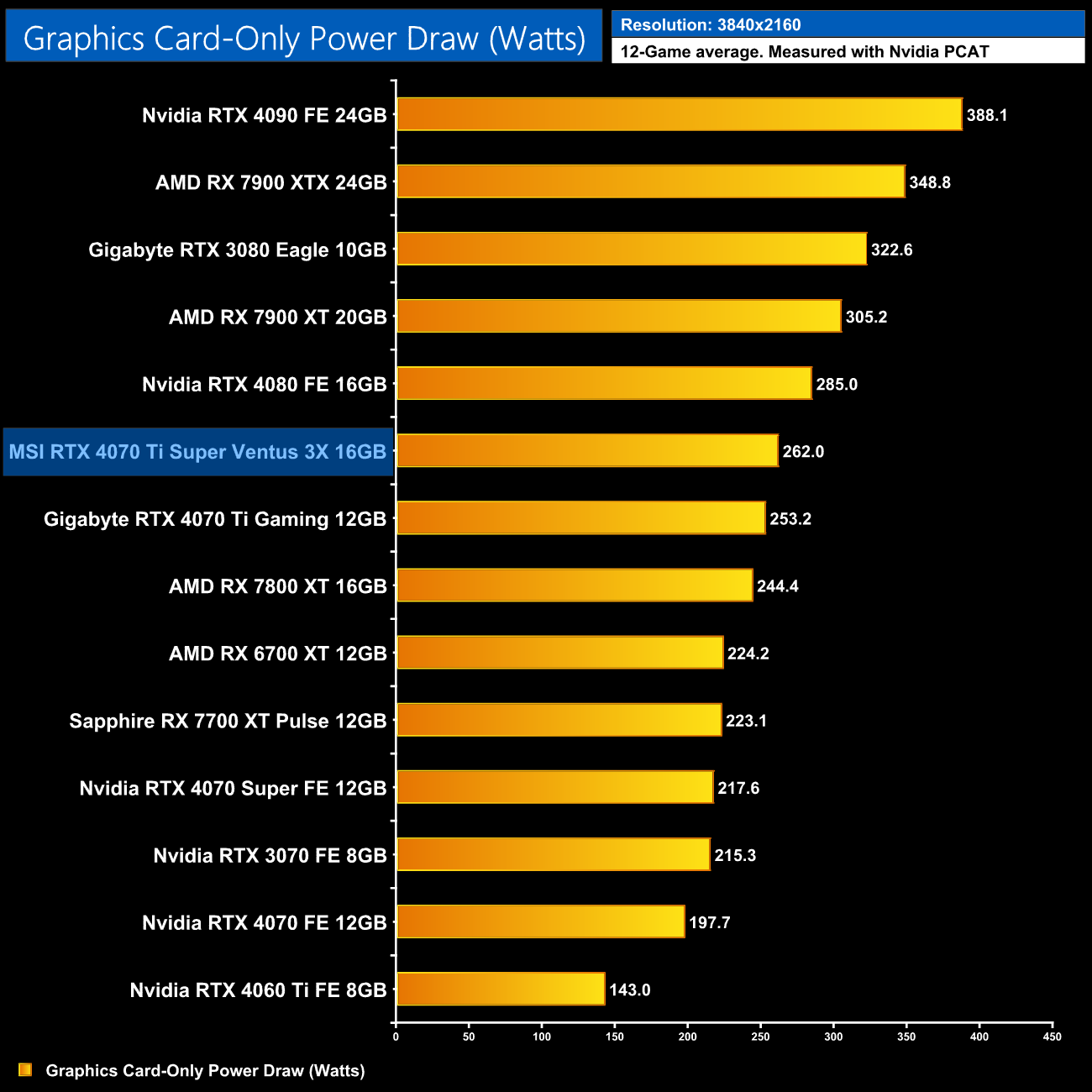 Lastly, up at 4K we see average power draw hit 262W, still below the 285W TGP, and this time 9W higher than the original 4070 Ti.