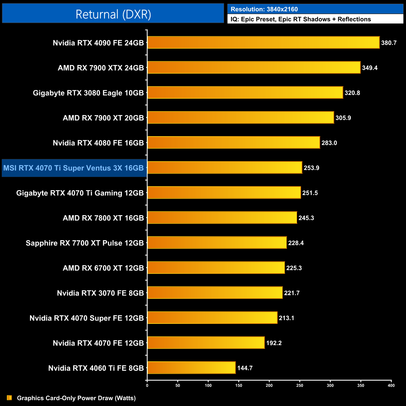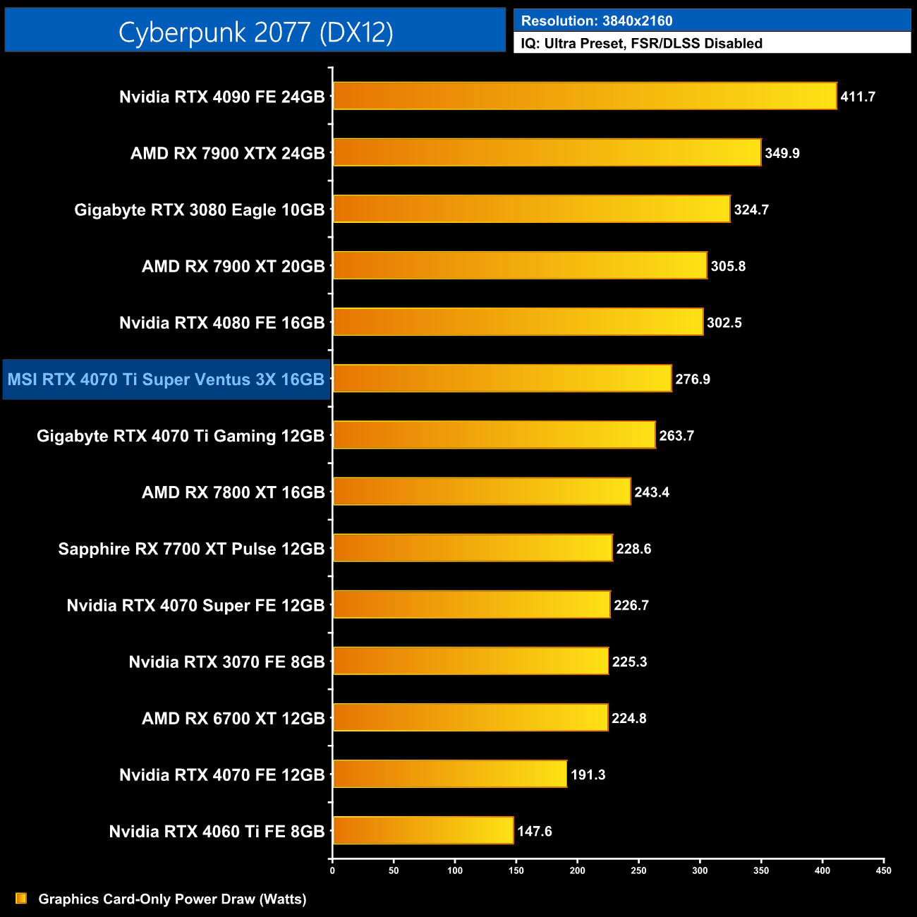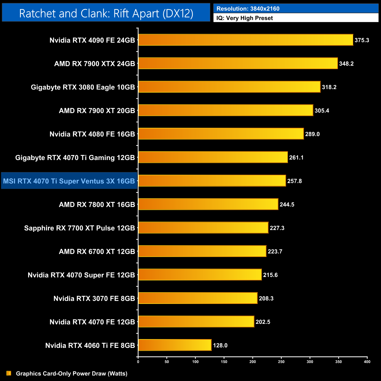 Lastly, up at 4K we see average power draw hit 262W, still below the 285W TGP, and this time 9W higher than the original 4070 Ti.