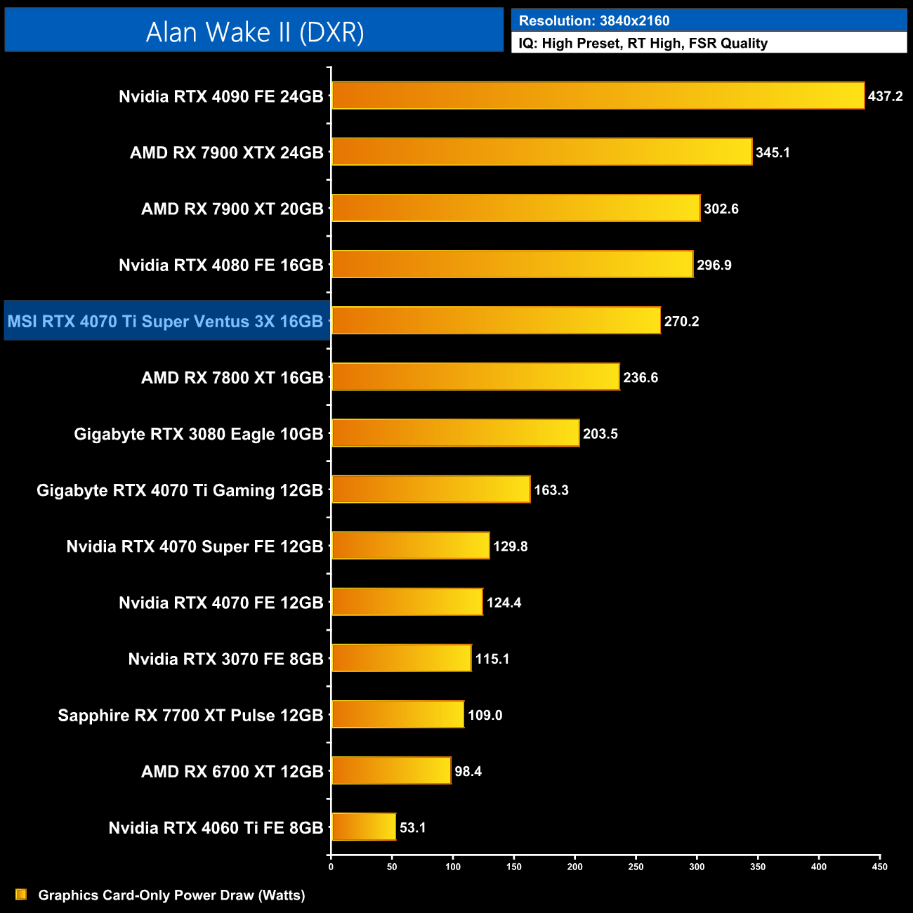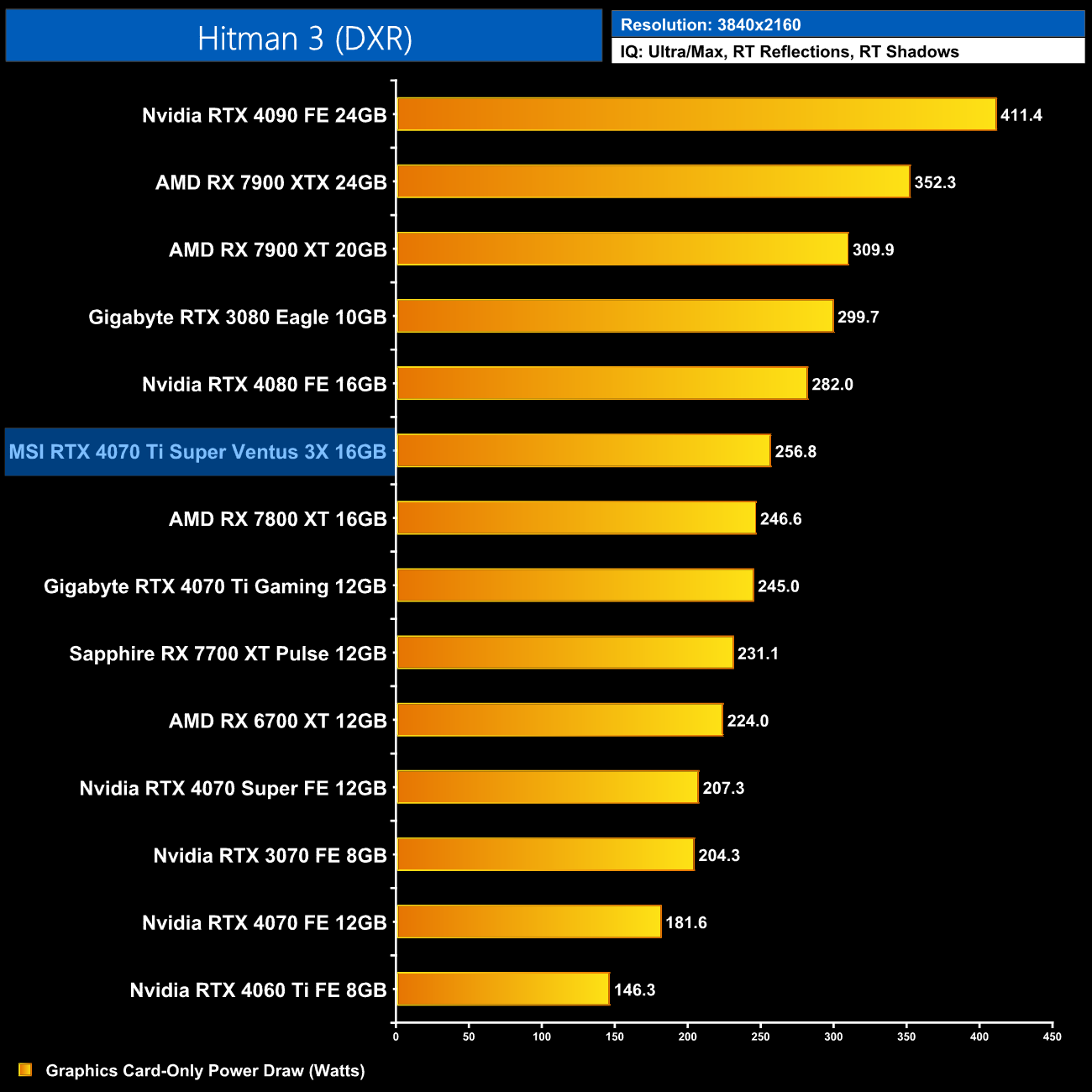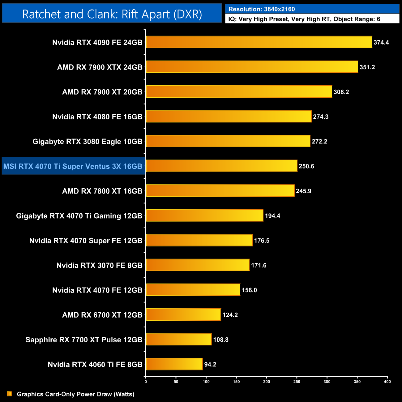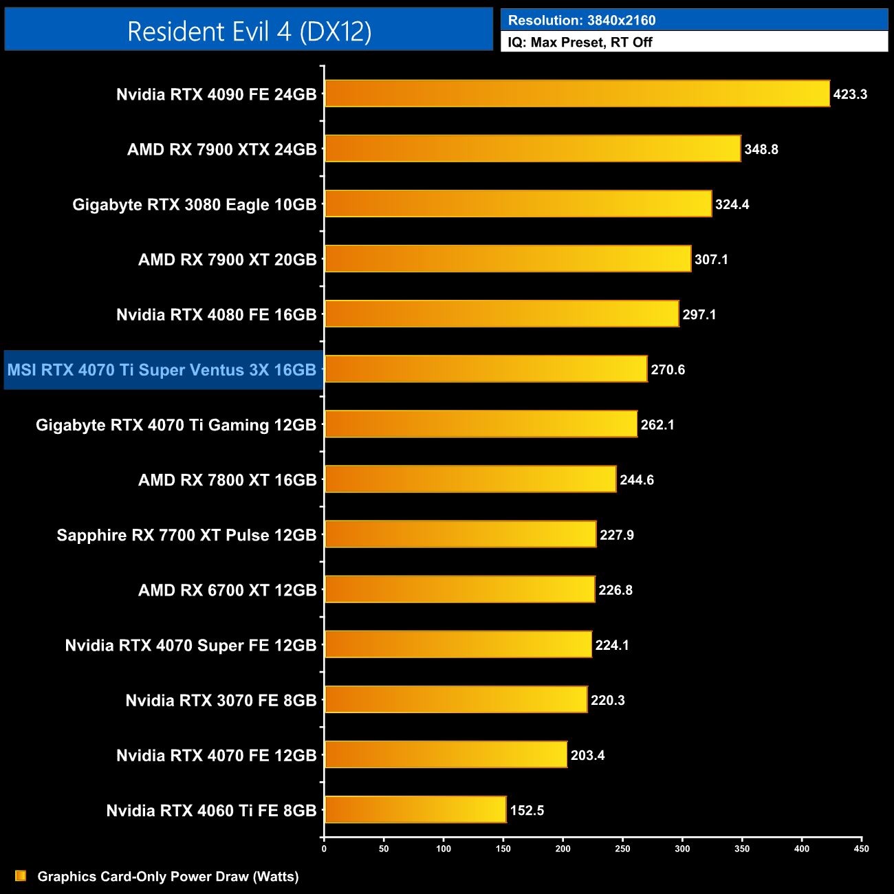 Lastly, up at 4K we see average power draw hit 262W, still below the 285W TGP, and this time 9W higher than the original 4070 Ti.