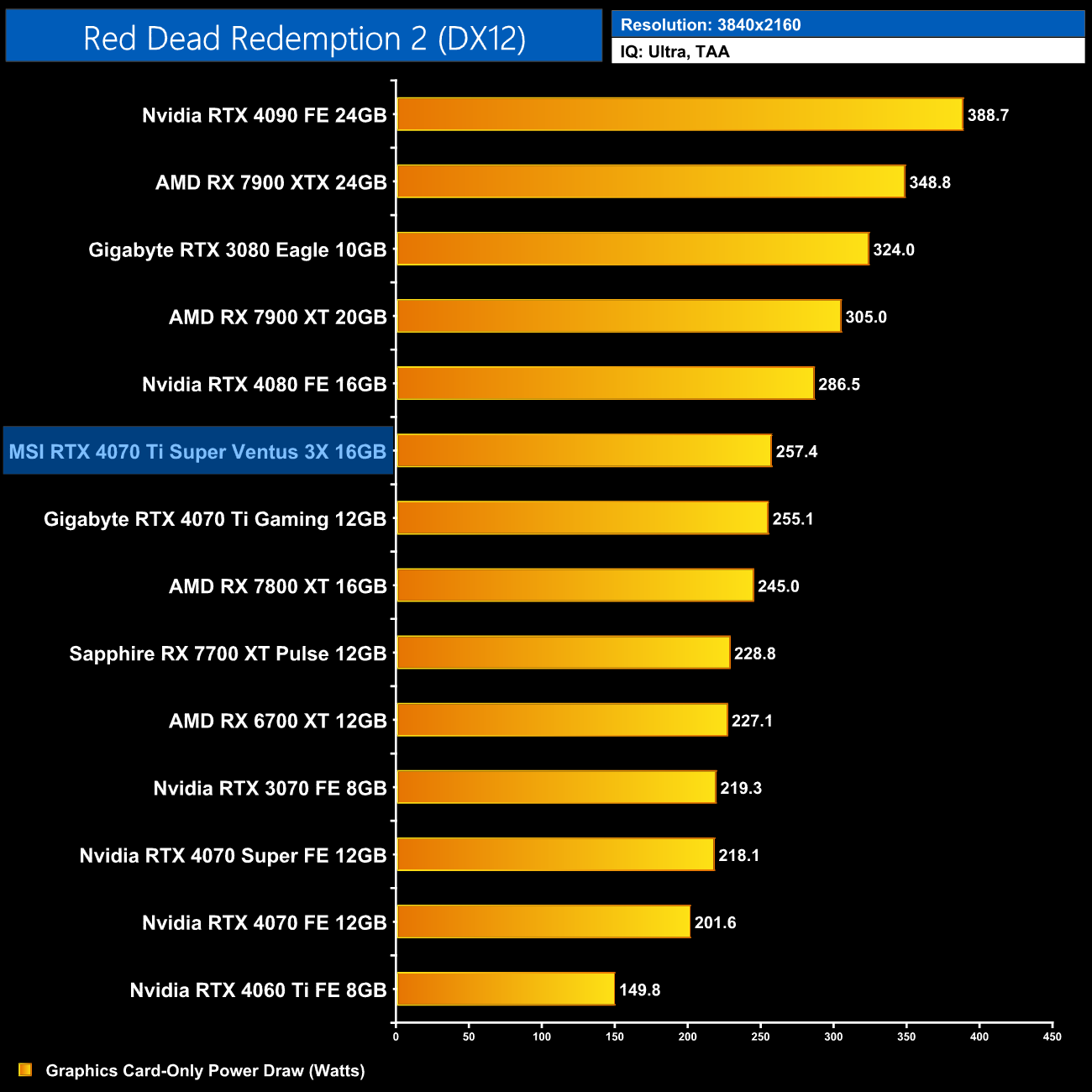 Here we present power draw figures for the graphics card-only, on a per-game basis for all twelve games we tested at 2160p (4K). This is measured using Nvidia's Power Capture Analysis Tool, also known as PCAT. You can read more about our updated power draw testing methodology HERE.