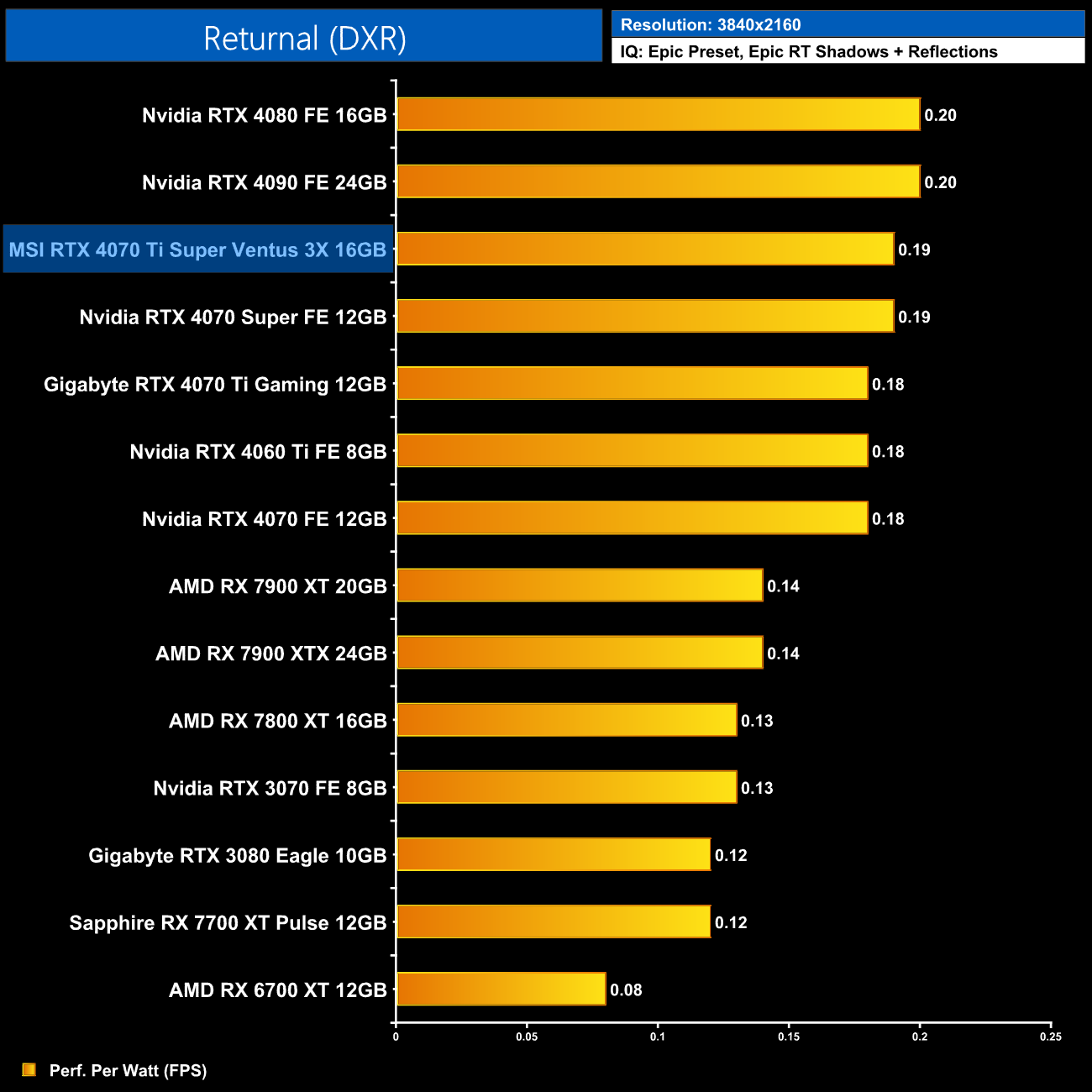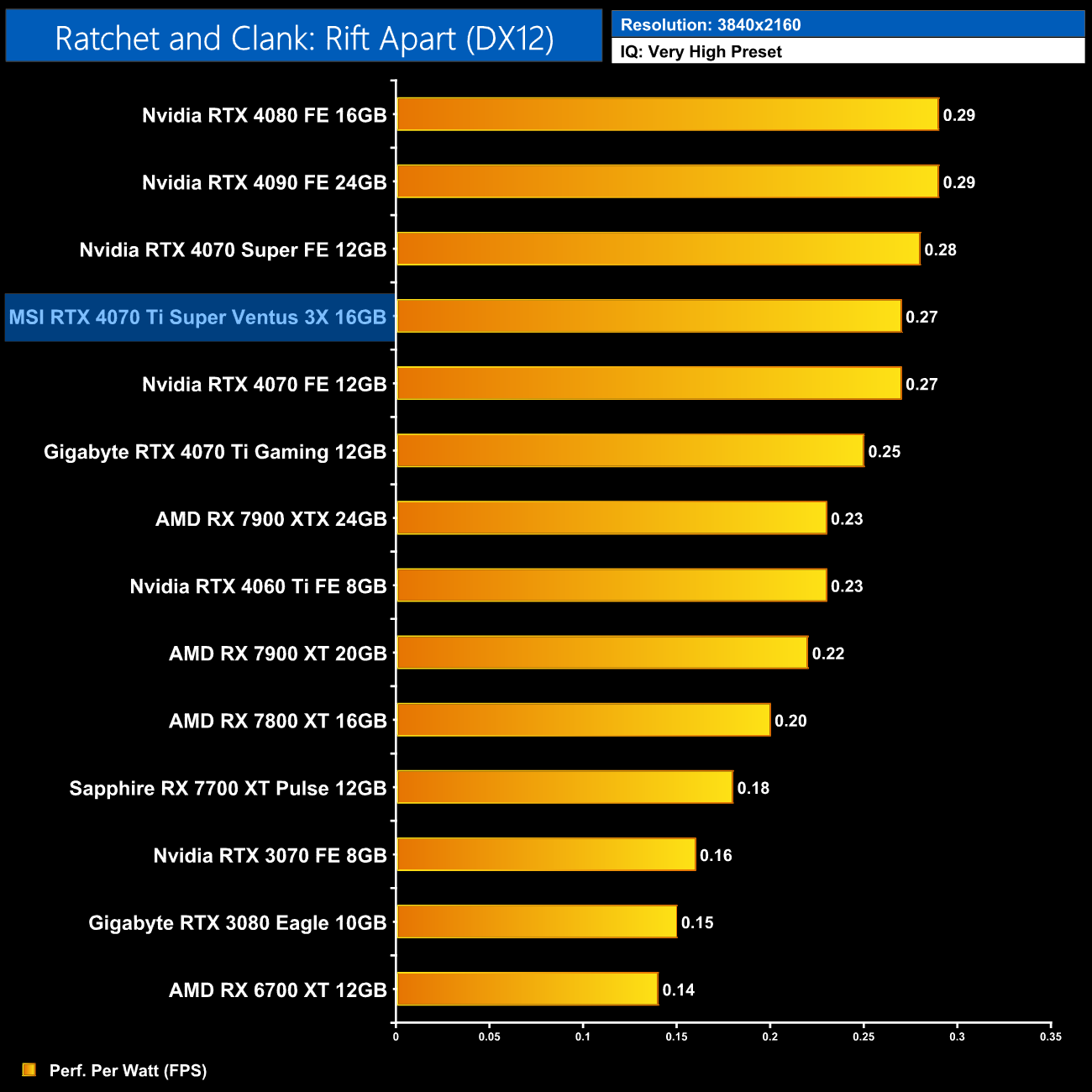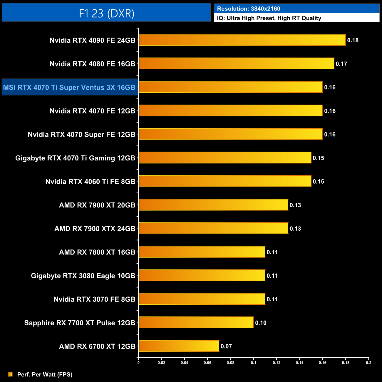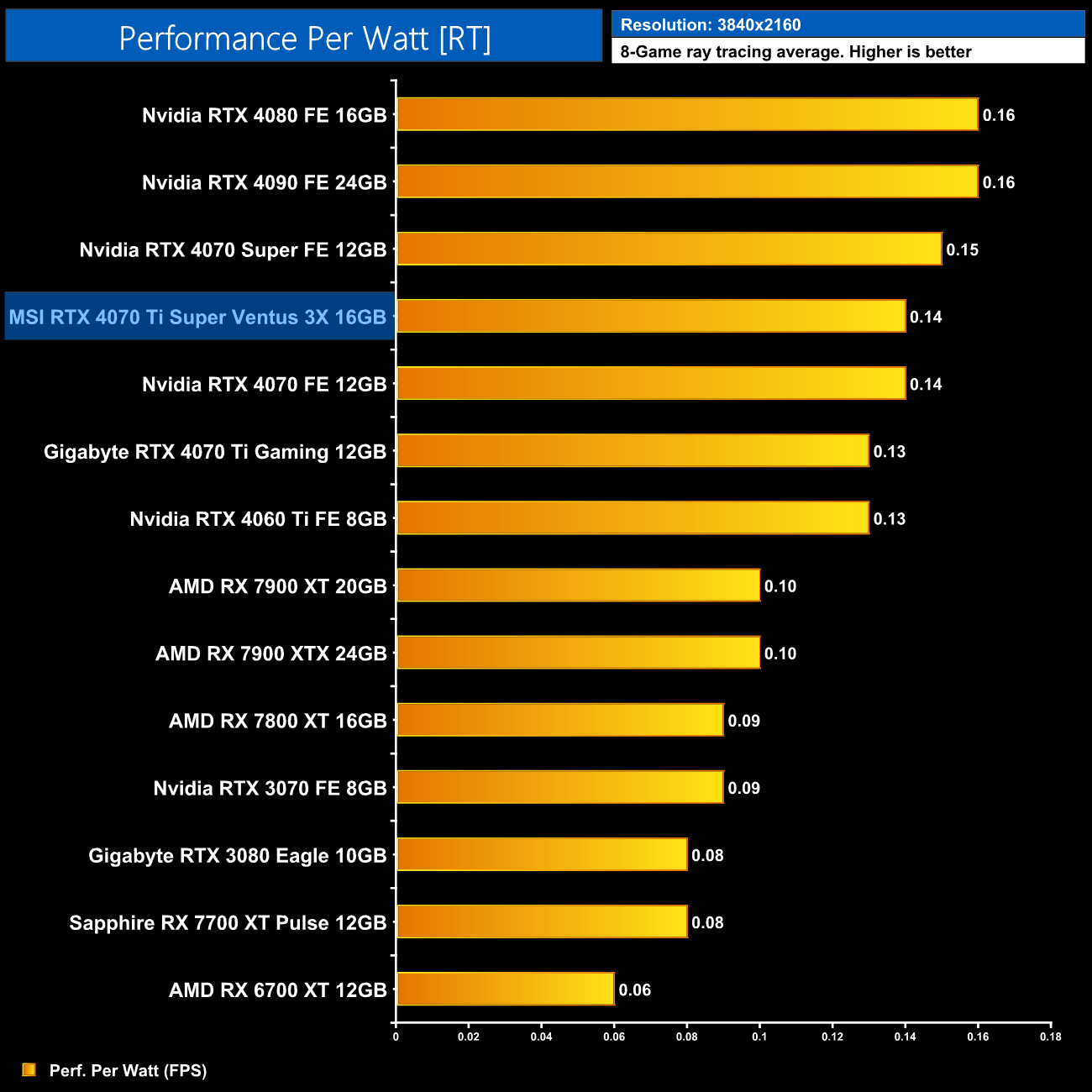 Lastly, the results follow a very similar trend at 4K, with the 4070 Ti Super on par with the RTX 4070 Super and just a hair behind the 4090 and 4080.